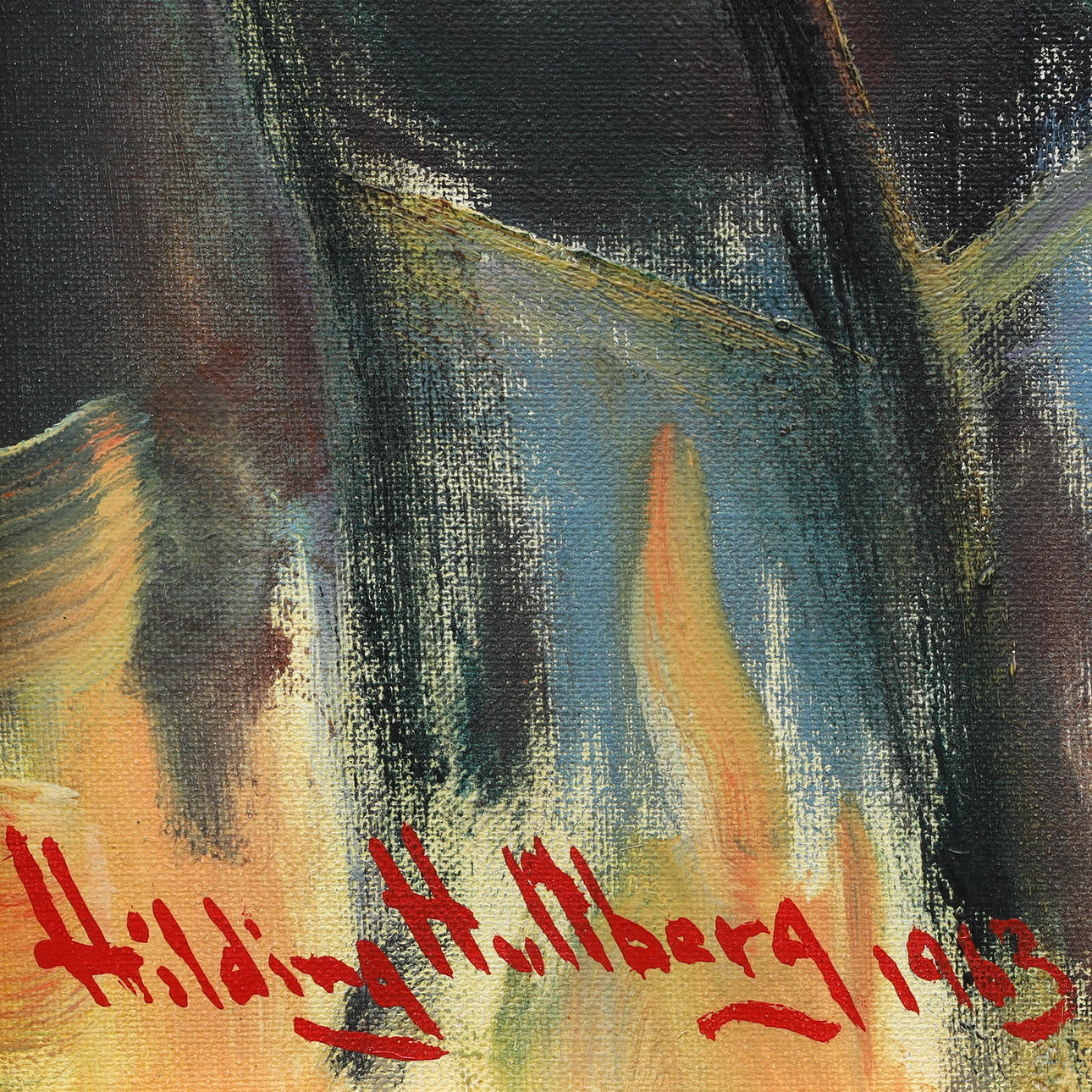 5011636. HILDING HULTBERG. oil on canvas, composition with figures, signed, dated 1963.
