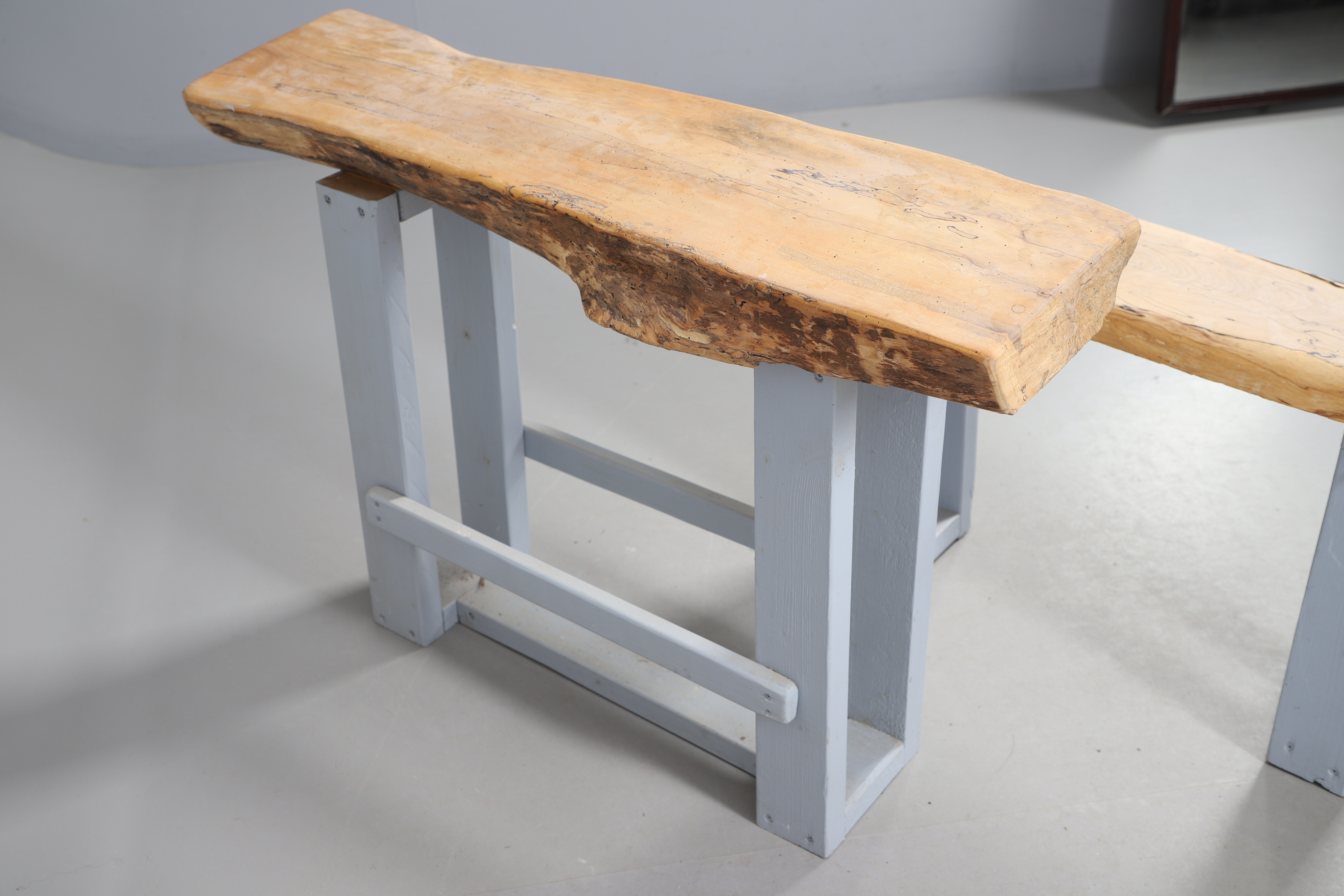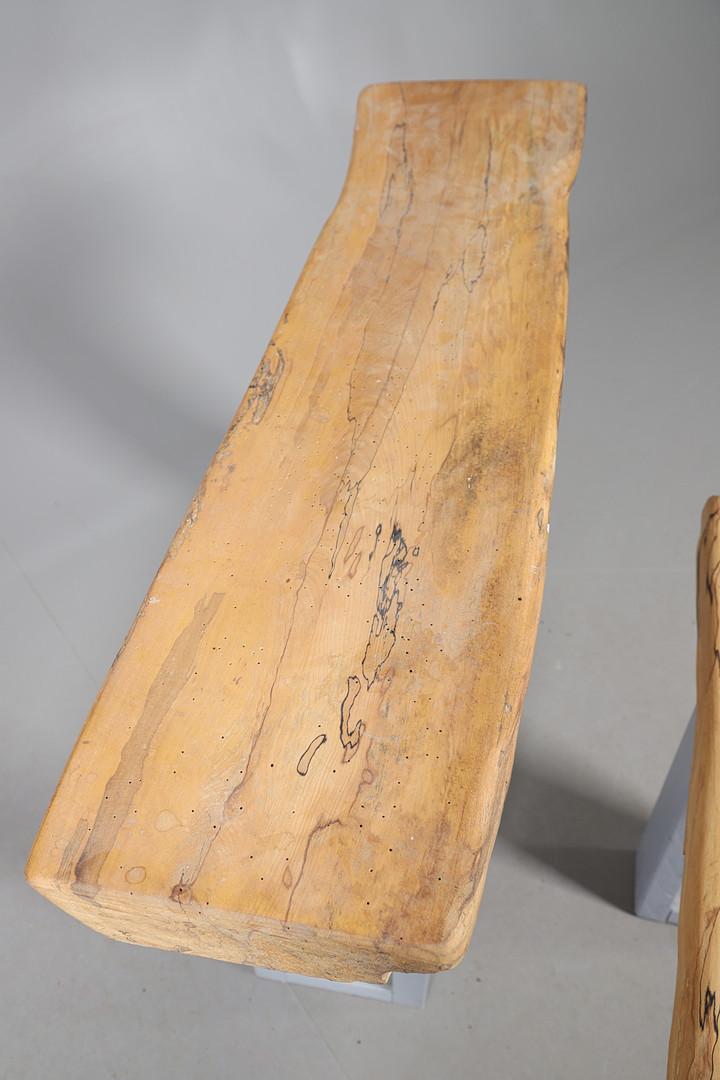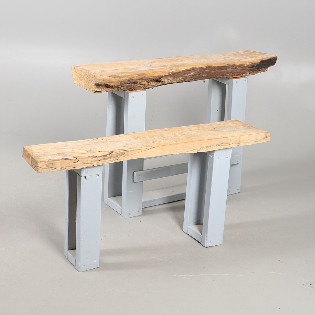 5011691. TWO RUSTIC HARDWOOD TOPPED BENCH SEATS.