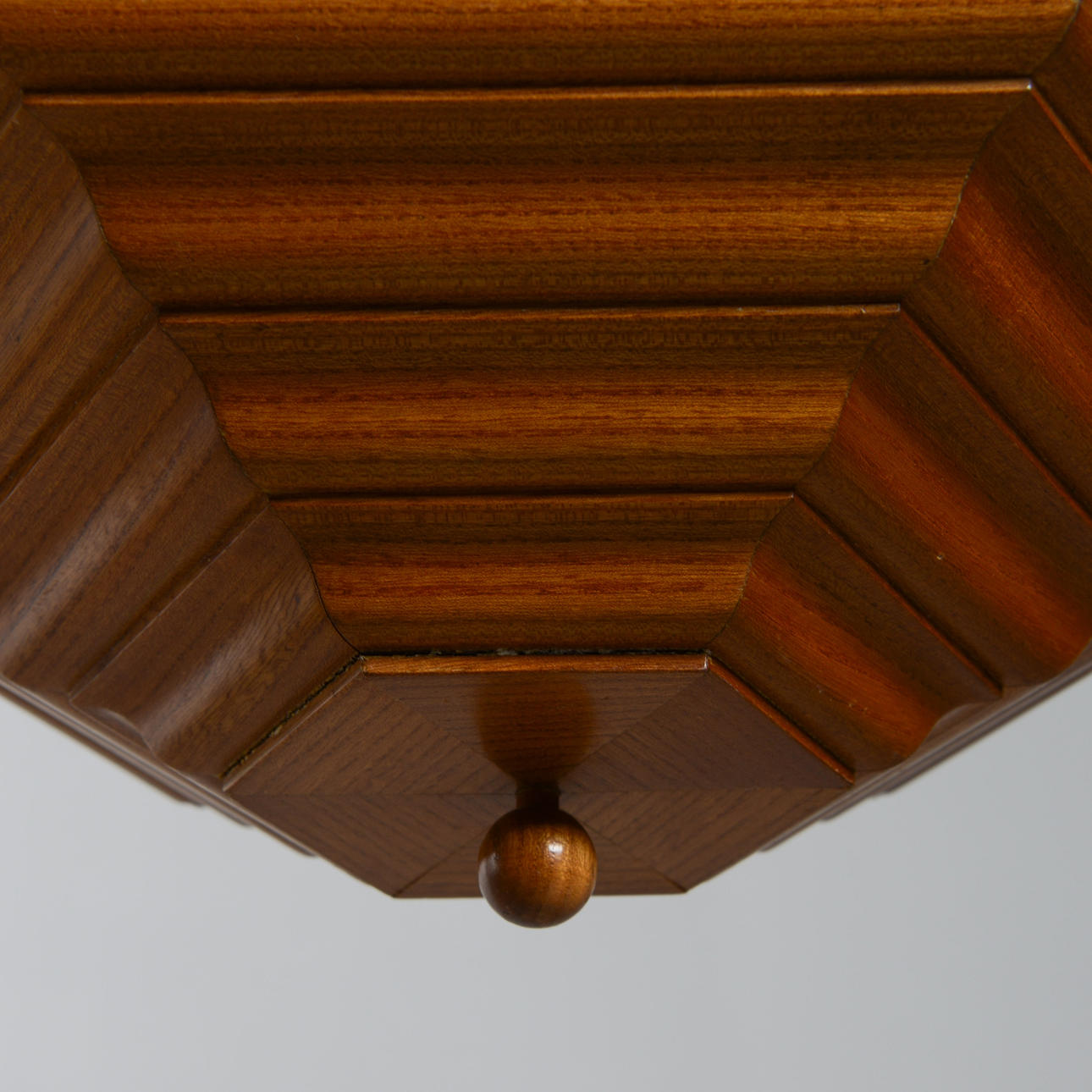 Metal frame. Wooden shade. 3 light points. Height 72 cm. Diameter 40 cm.