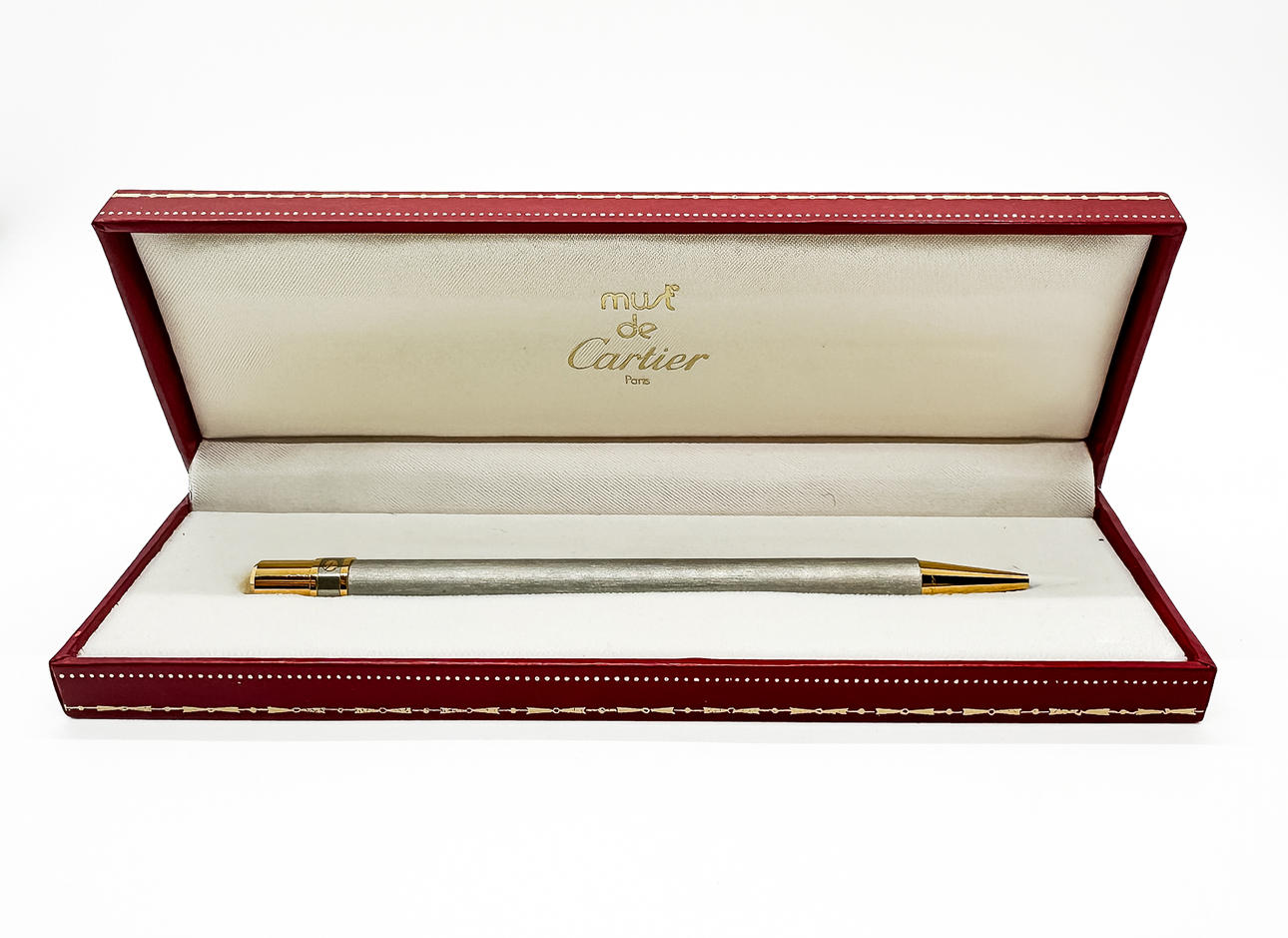 Matte silver and gold tinted metal. Marked “Must de Cartier”, as well as B 16495.