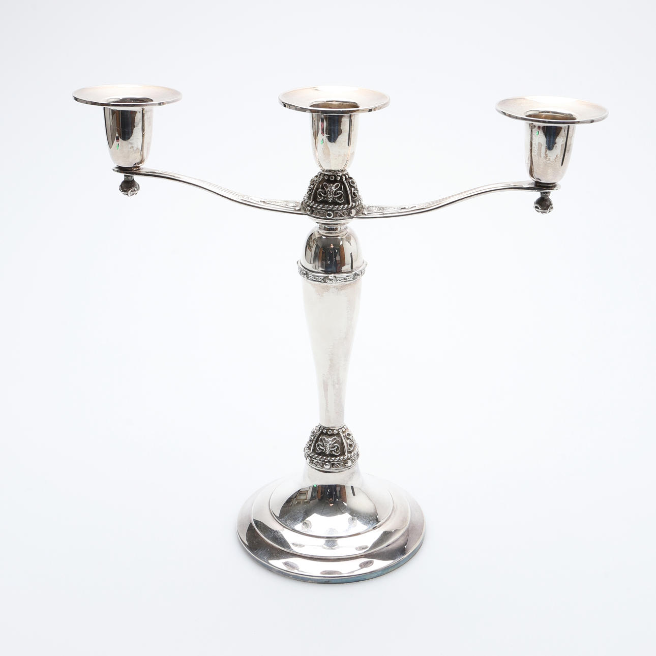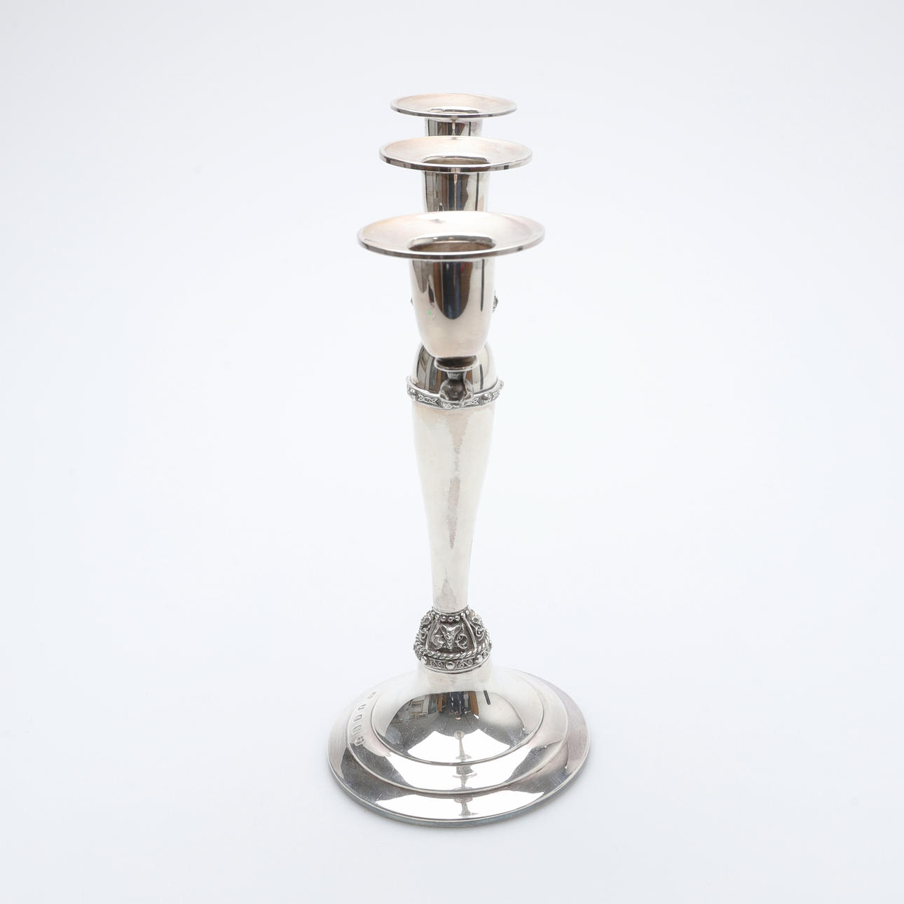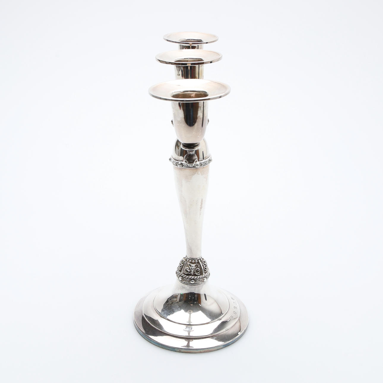 With Celtic-style decoration, 3 inverted campana capitals, and a baluster column on a stepped circular base, by Irish Silver Ltd., Dublin, 1973, commemorative entry into the EEC mark, H.23.5cm.