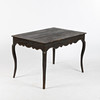 Black painted wood, cut decor, freestanding model, height approx. 73, 109 x 77 cm.