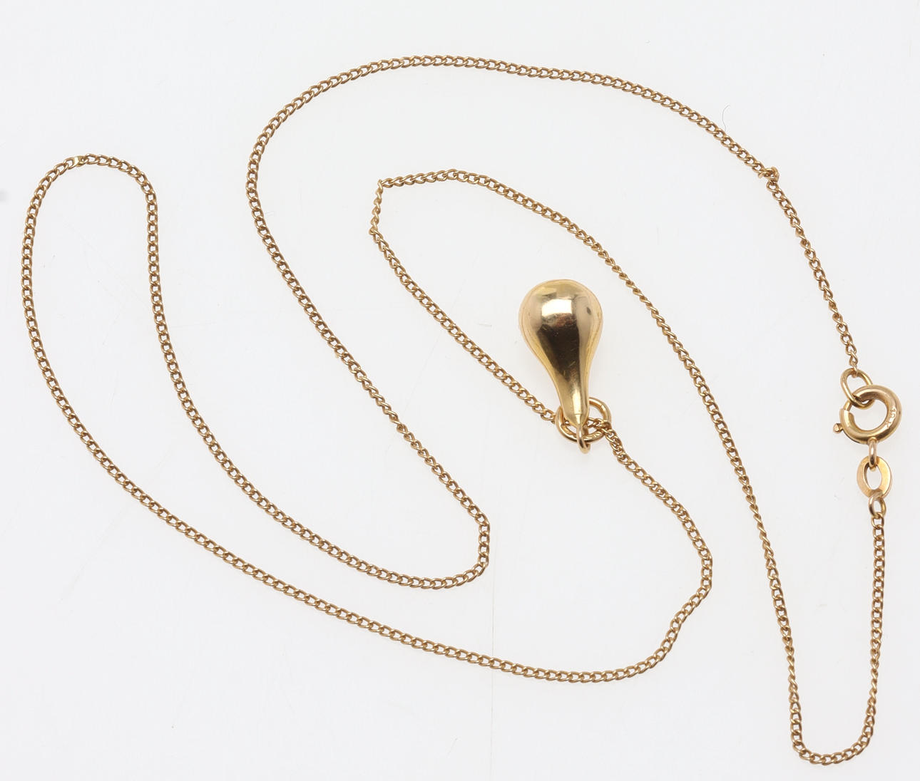 Weight about 2.4 grams. Pendant length approx. 14.5 mm. Chain, length approx. 44 cm, width approx. 1 mm.