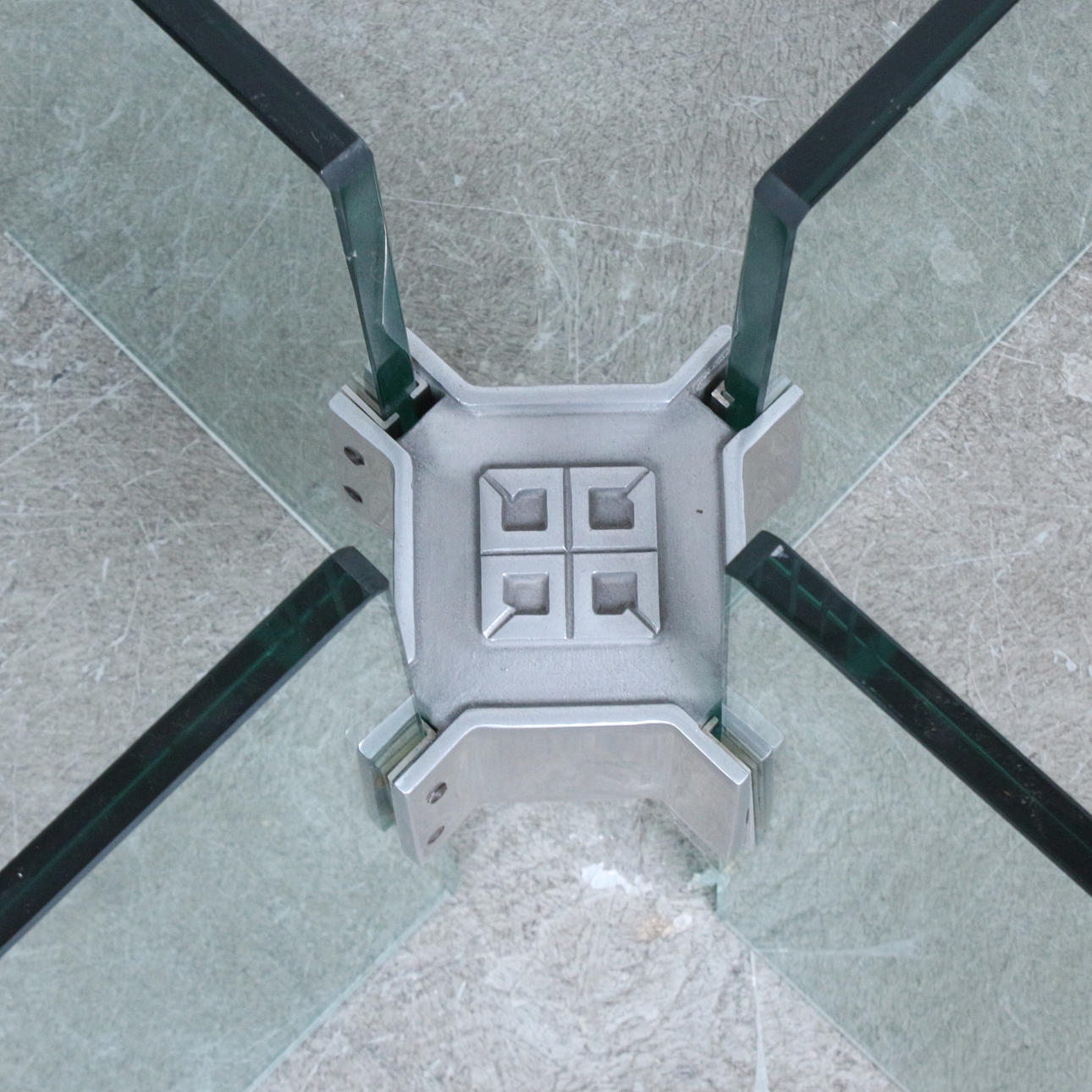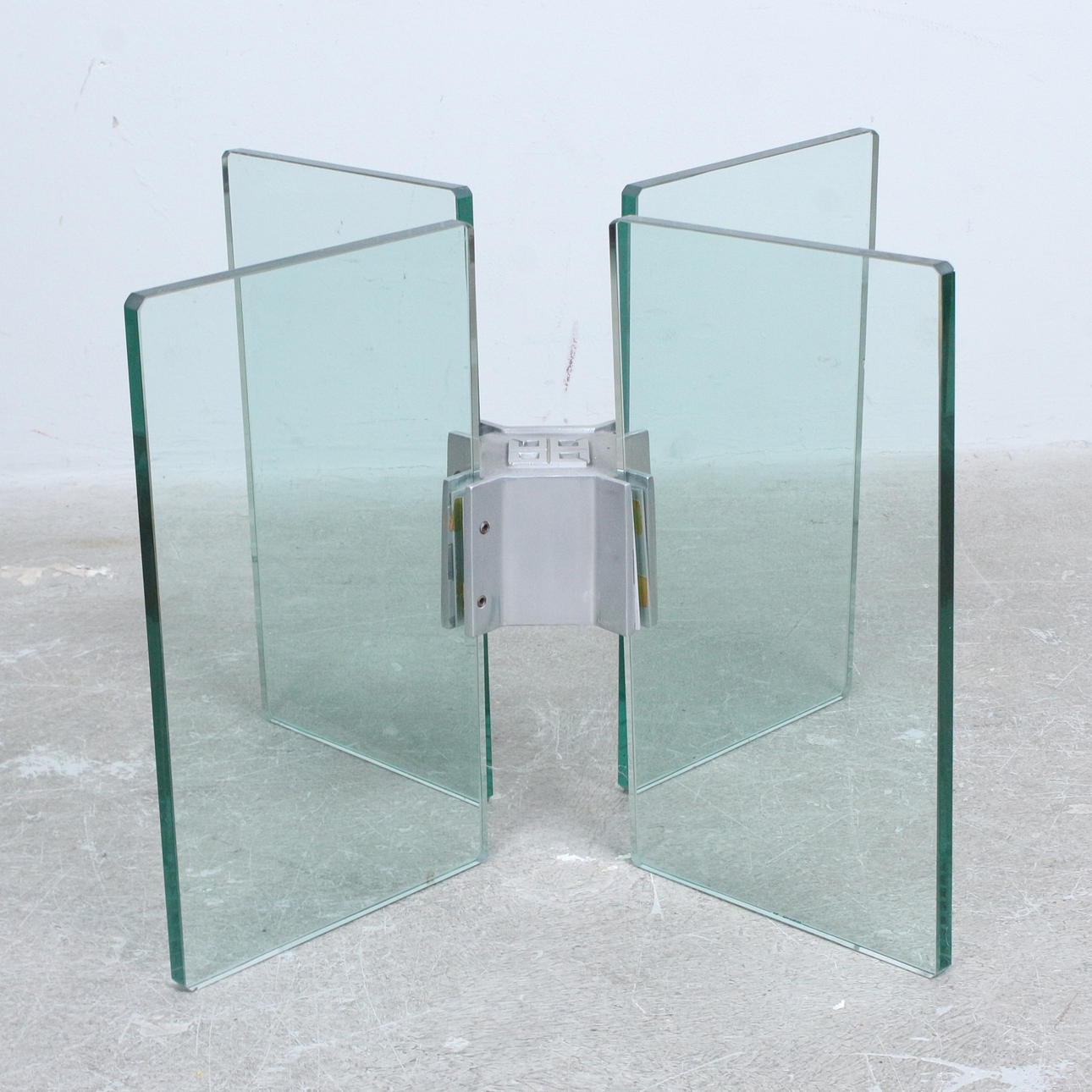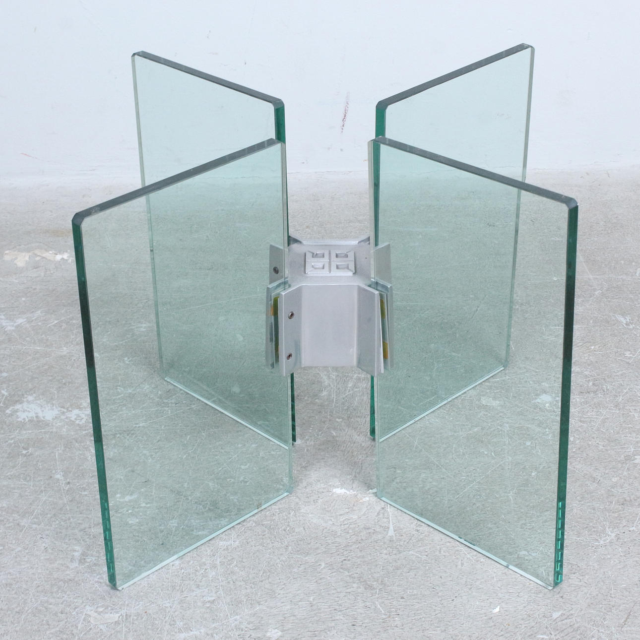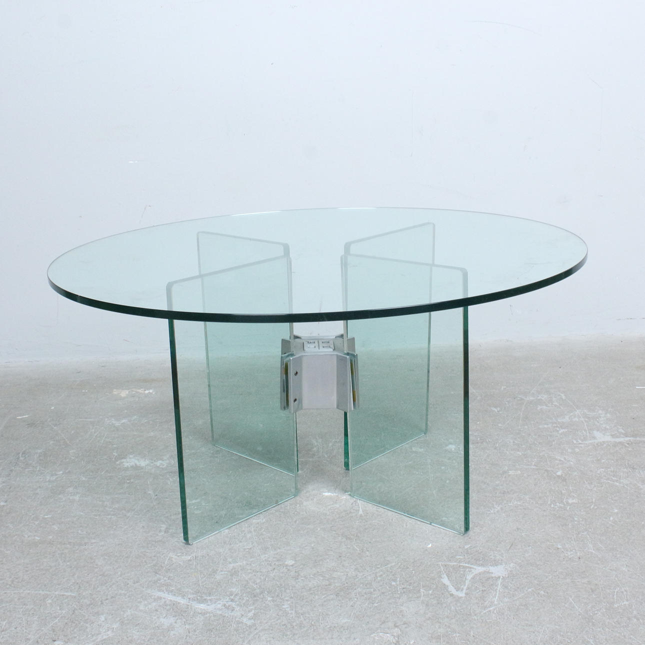 Peter Ghyczy, coffee table/coffee table from the 1970s.. Glass and metal construction With round glass plate on top.