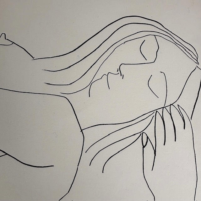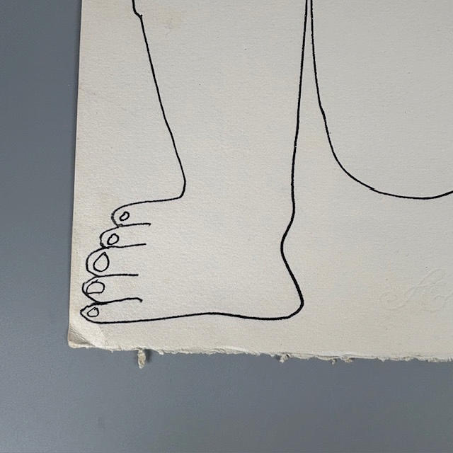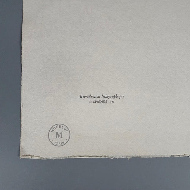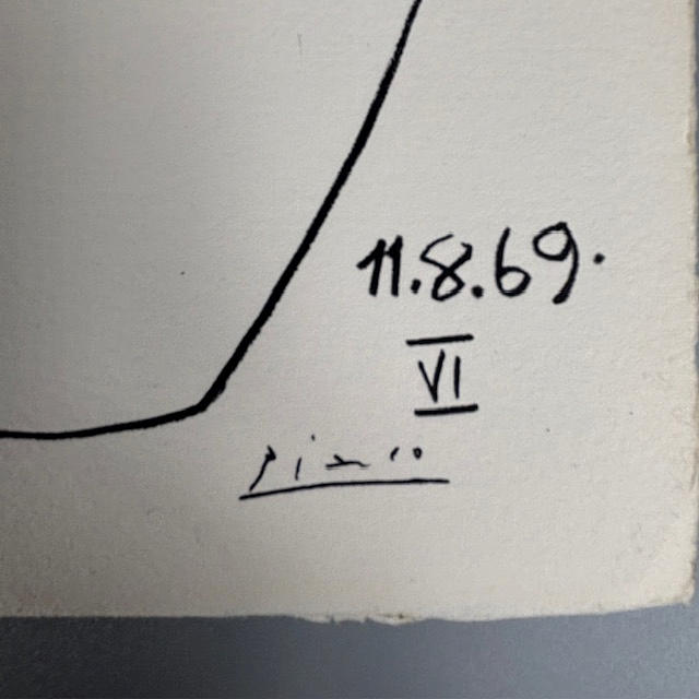 Pablo Picasso print of a reclining nude, VI, 11.8.69, Mourlot Paris stamp to reverse, Reproduction Lithographique, Spadem 1972, Arches watermark to paper, (Mourlot Paris were Picasso's favoured printers of his works) approximately 50 x 49cm.