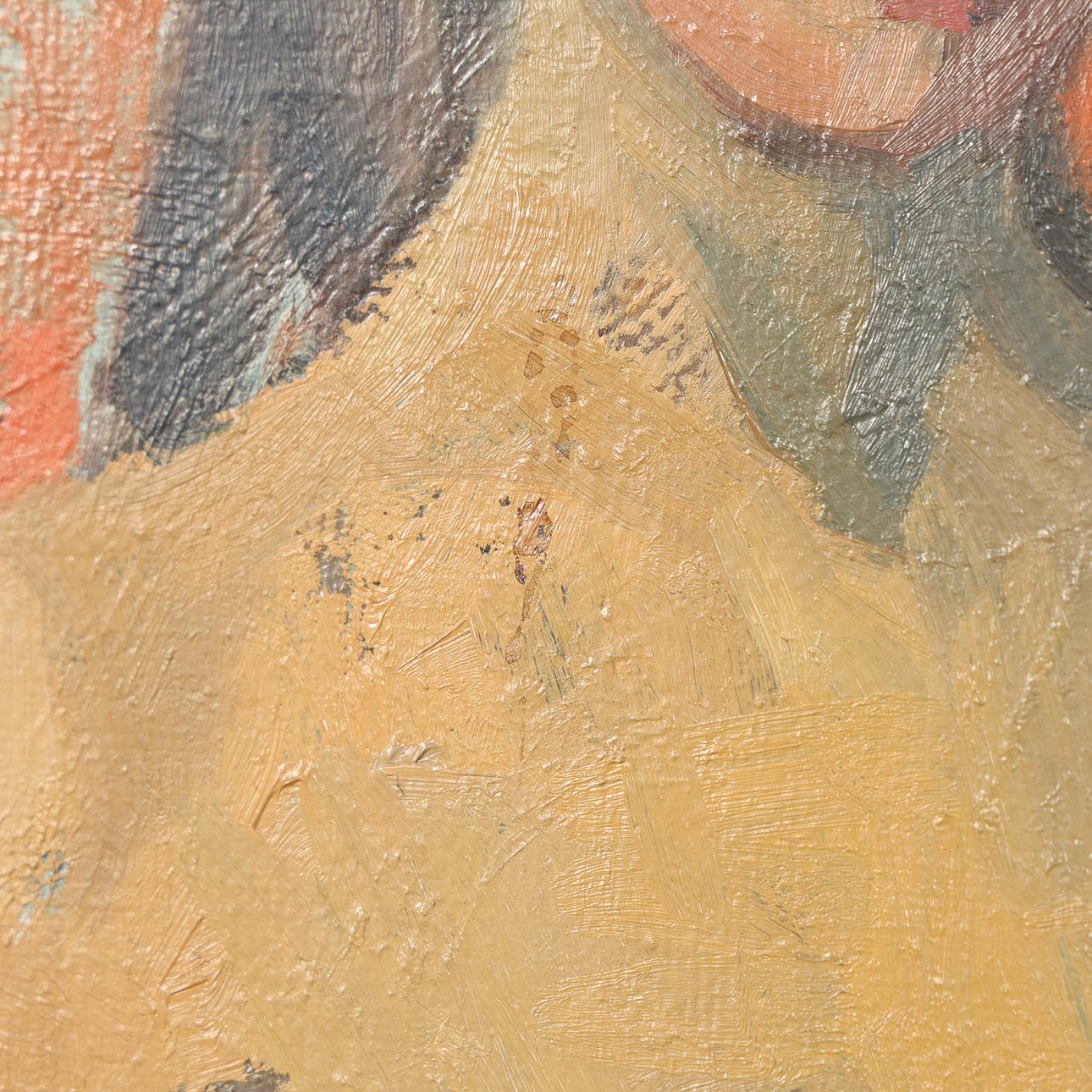 Wear in the canvas as well as stain.