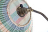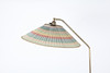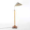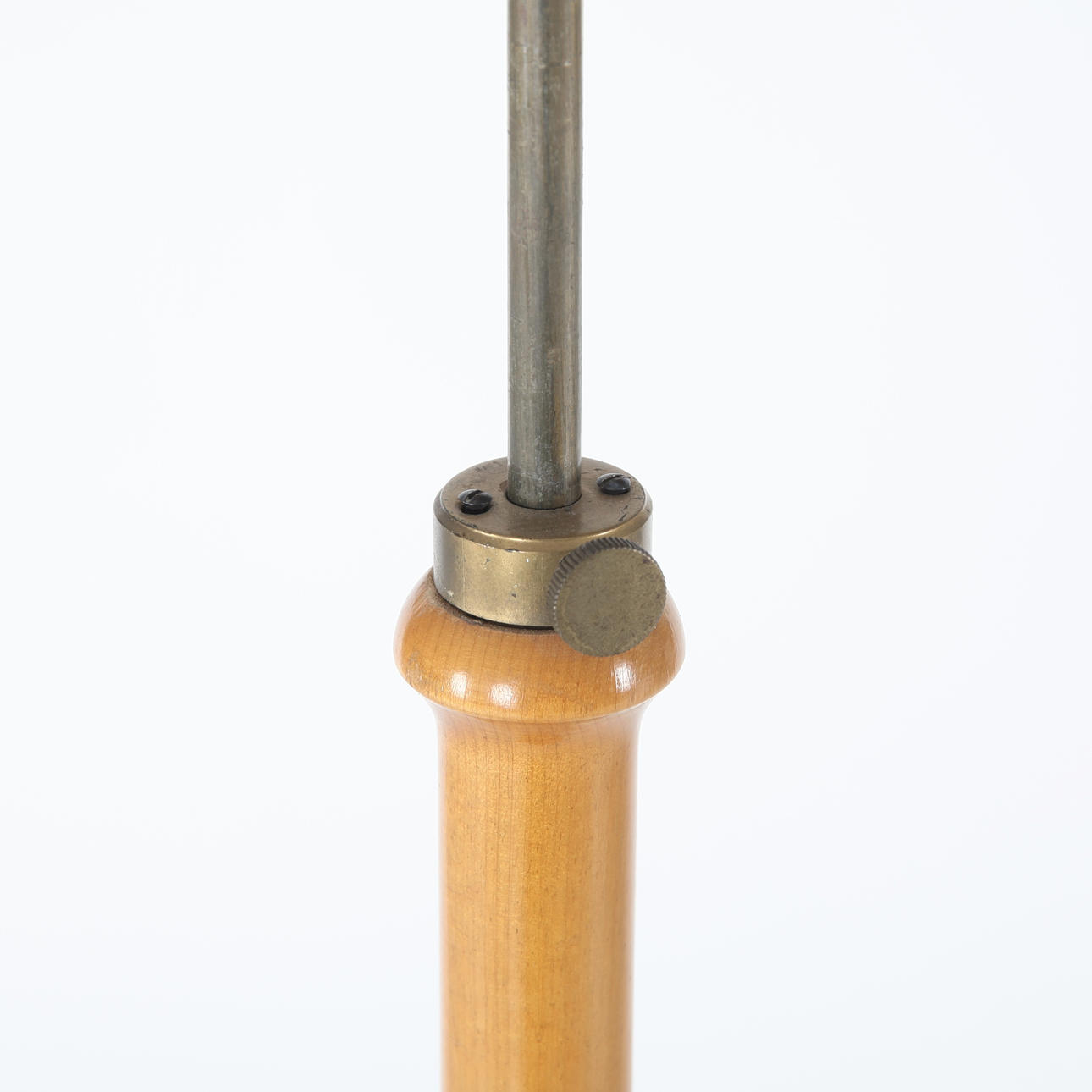Floor lamp, boned and blackened hardwood, brass, height-adjustable. Adjustable screen in pleated textile, inner screen in cellulose. Bakelite switch.