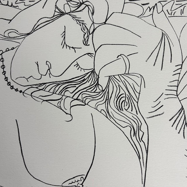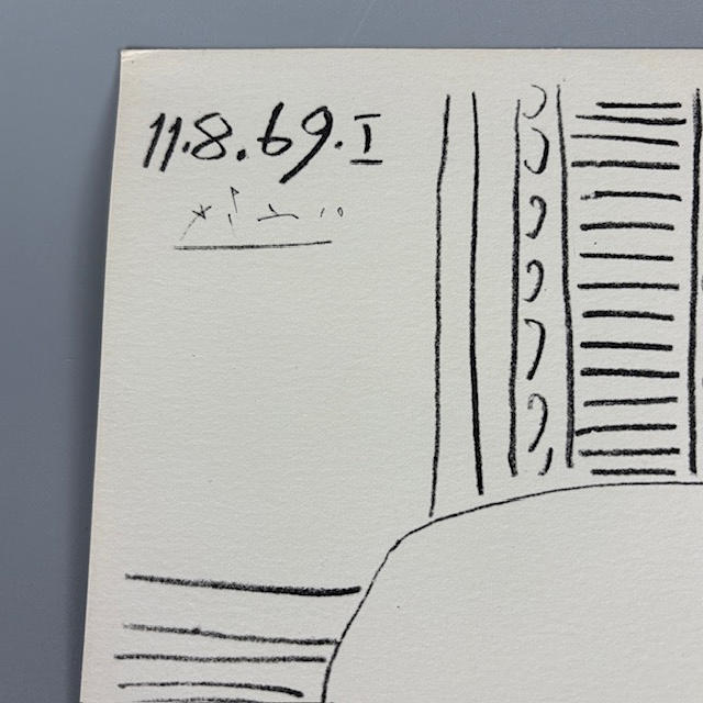 Pablo Picasso print of a reclining nude, I, 11.8.69., Mourlot Paris stamp to reverse, Reproduction Lithographique, Spadem 1972, Arches water mark to paper (Mourlot Paris were Picasso's favoured printers of his works )