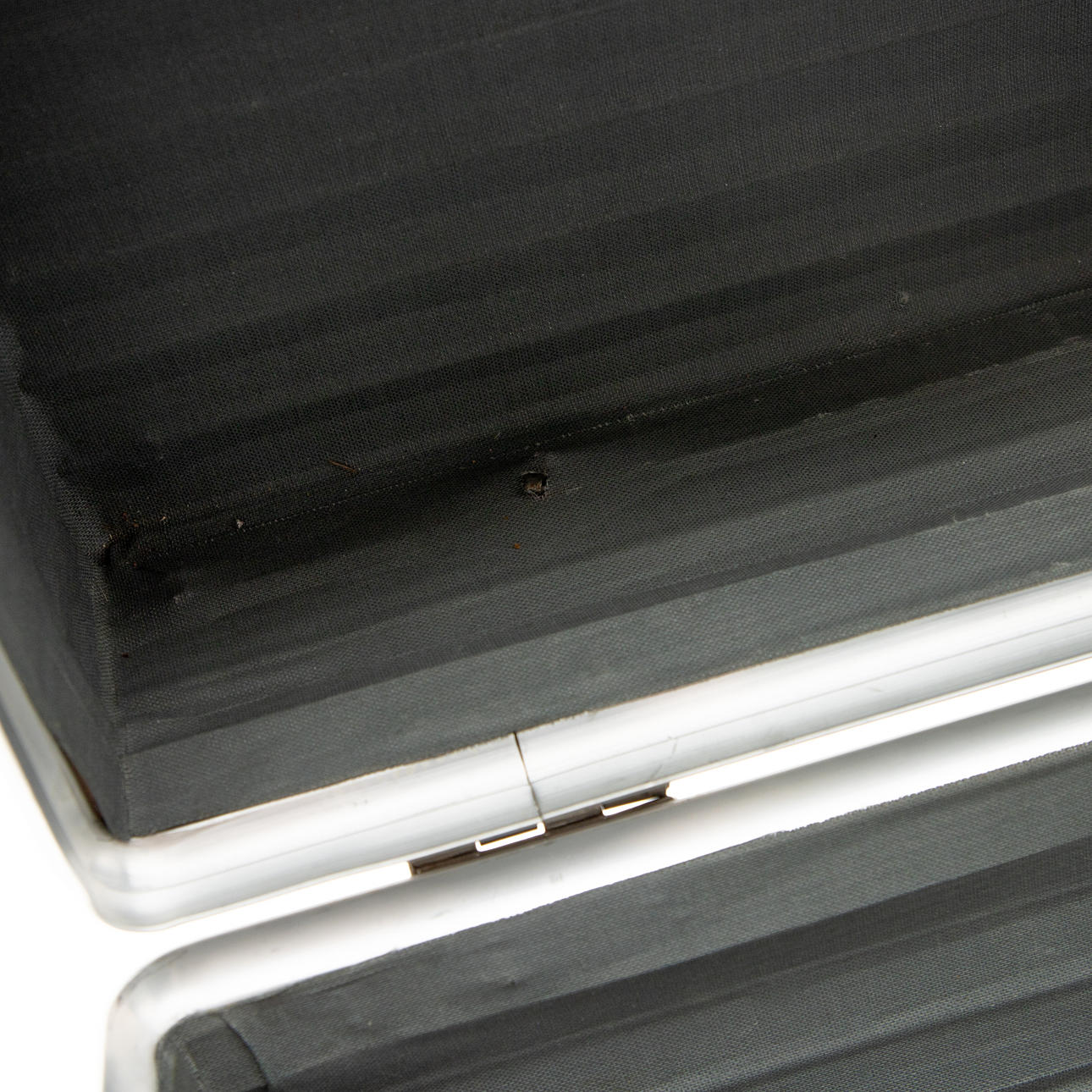 Signs of age and use. scratches and abrasions. Slightly dented and corroded in places. Key is missing.