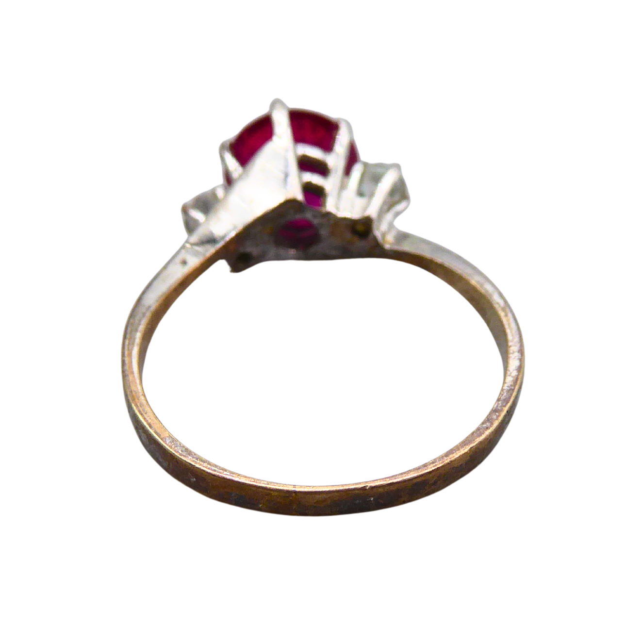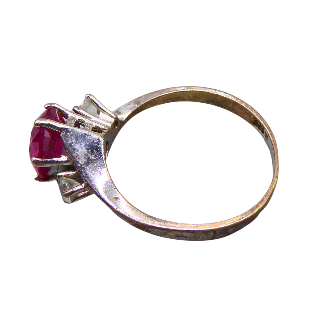 5012223. 333 WHITE GOLD RING WITH A NATURAL RUBY IN CAP SETTING.