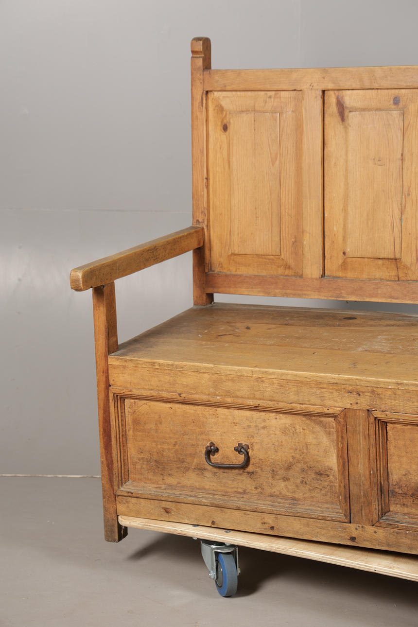 AN EARLY 20TH CENTURY PINE SETTLE.