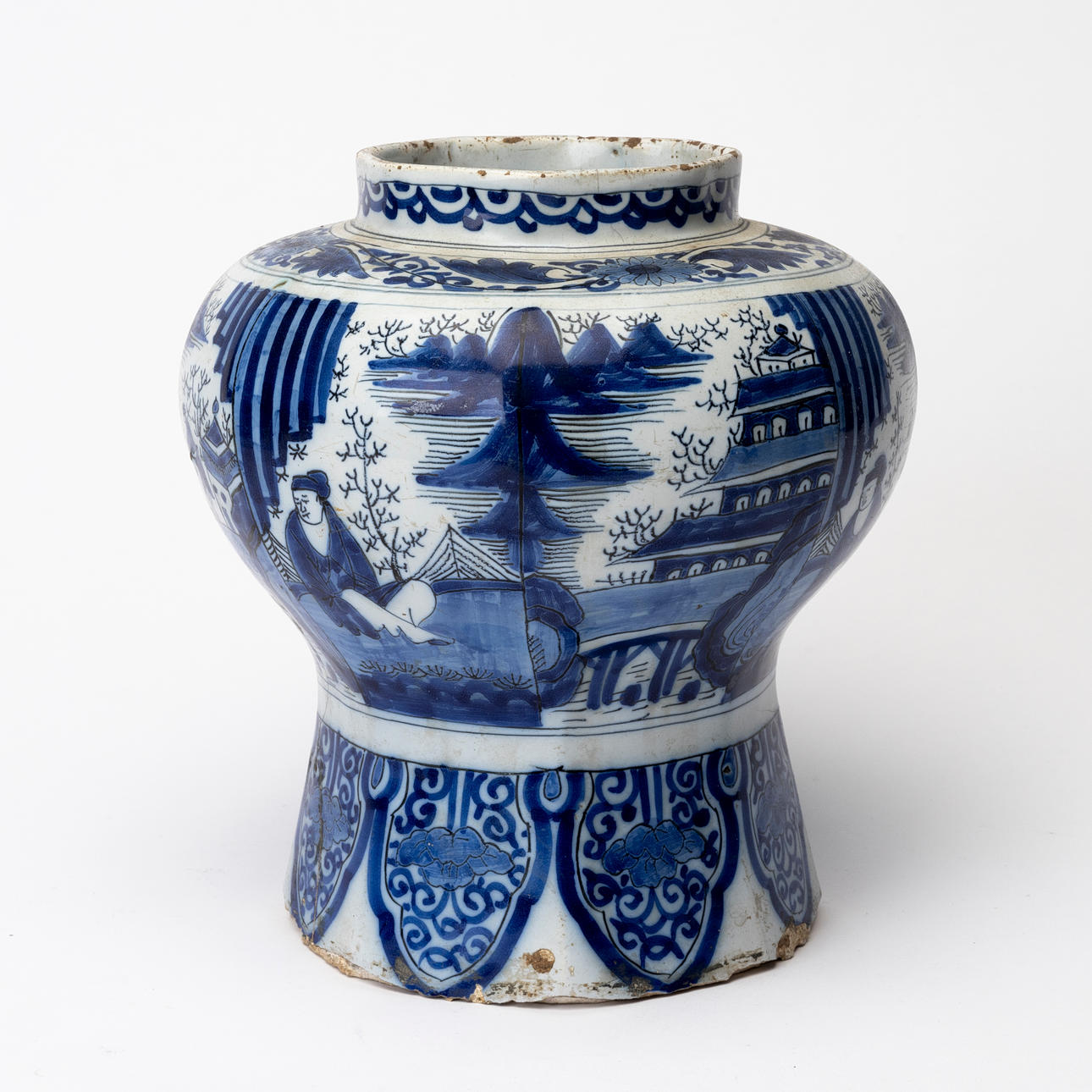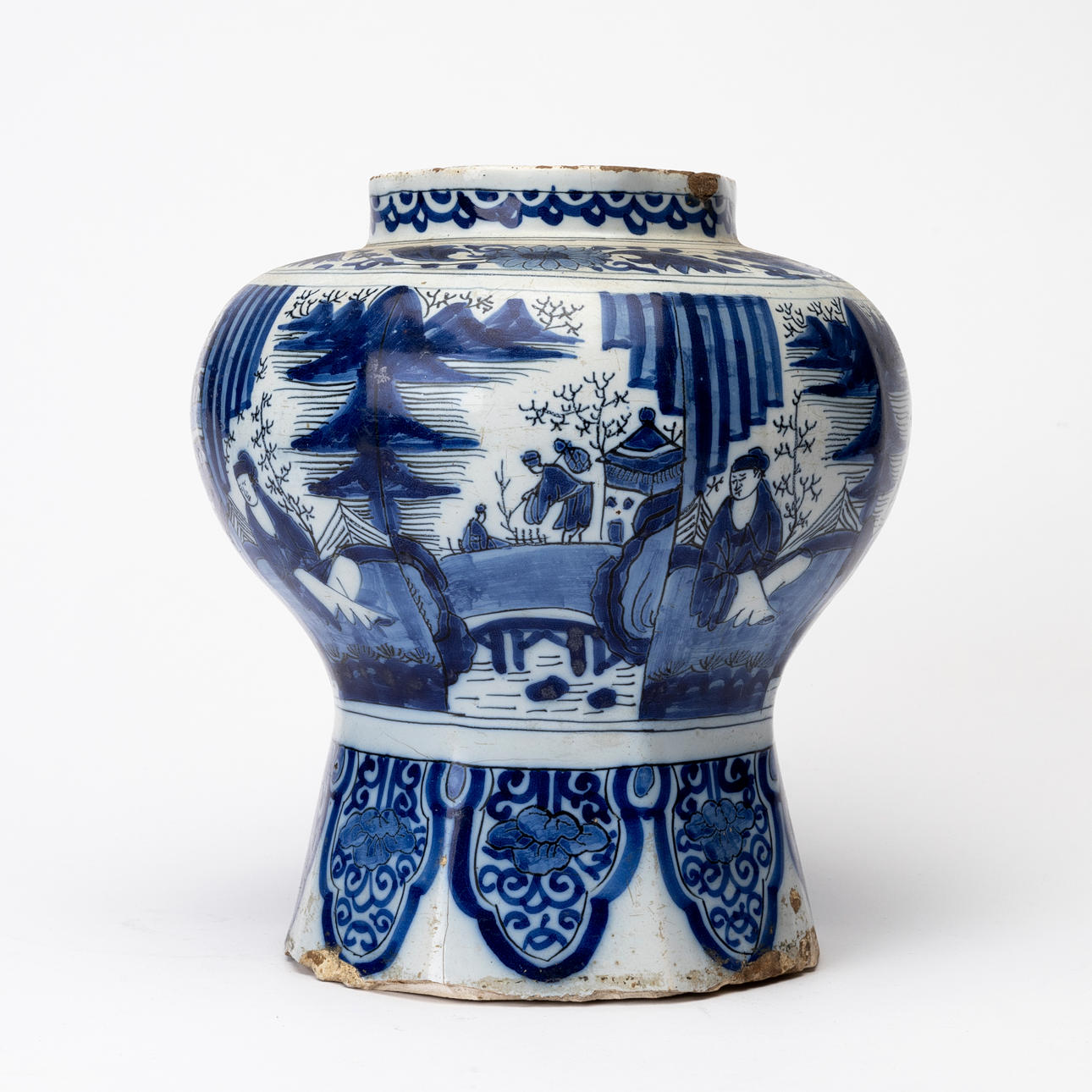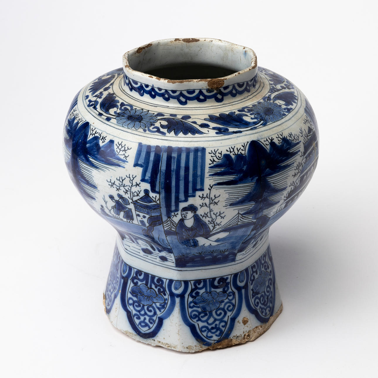 On foot, life with bubbly shape with Chinese figure scenes with buildings, the foot and under the mouth with floral and cloud-like decor.