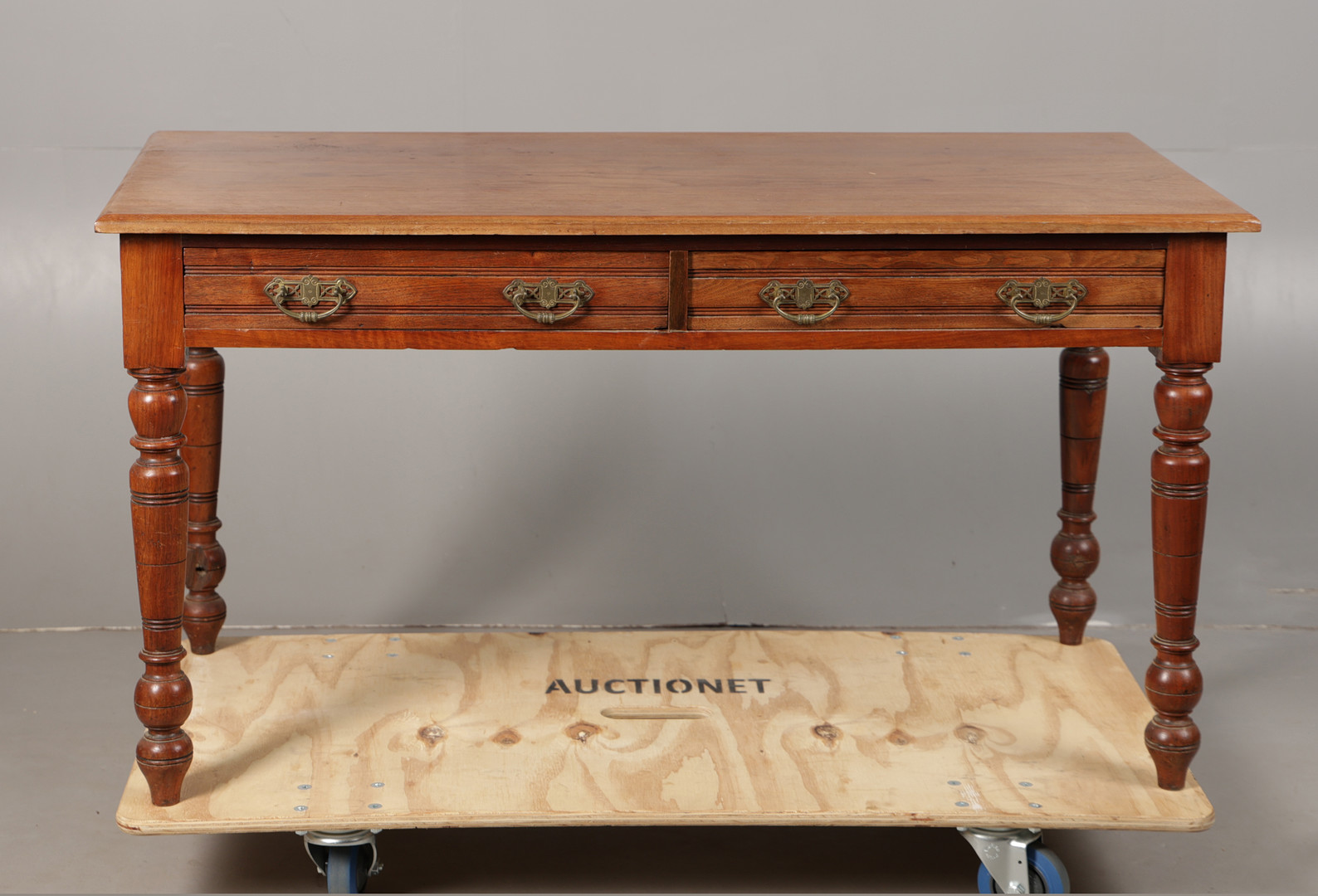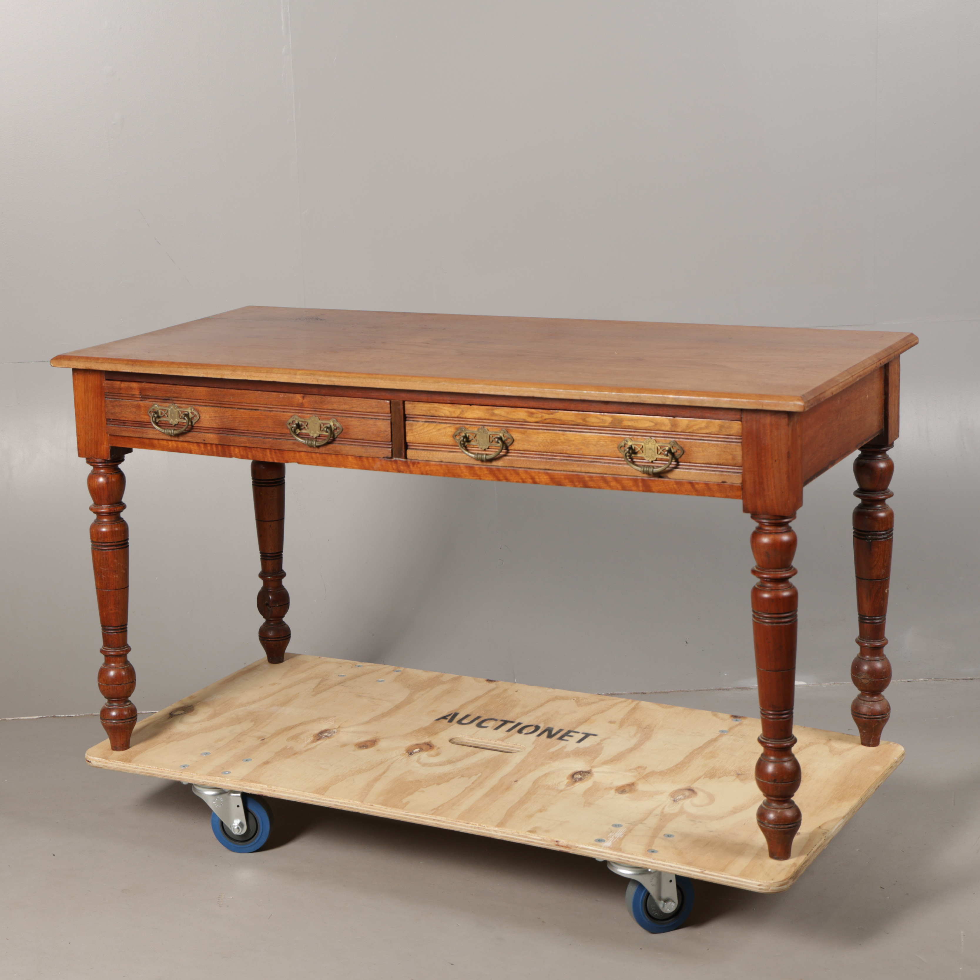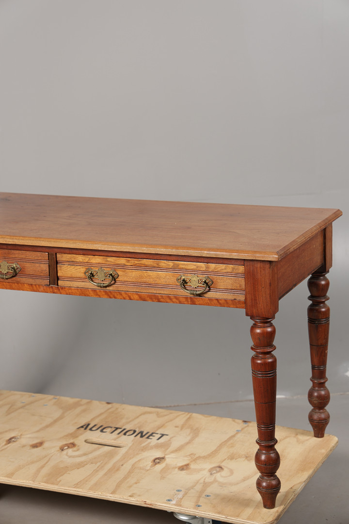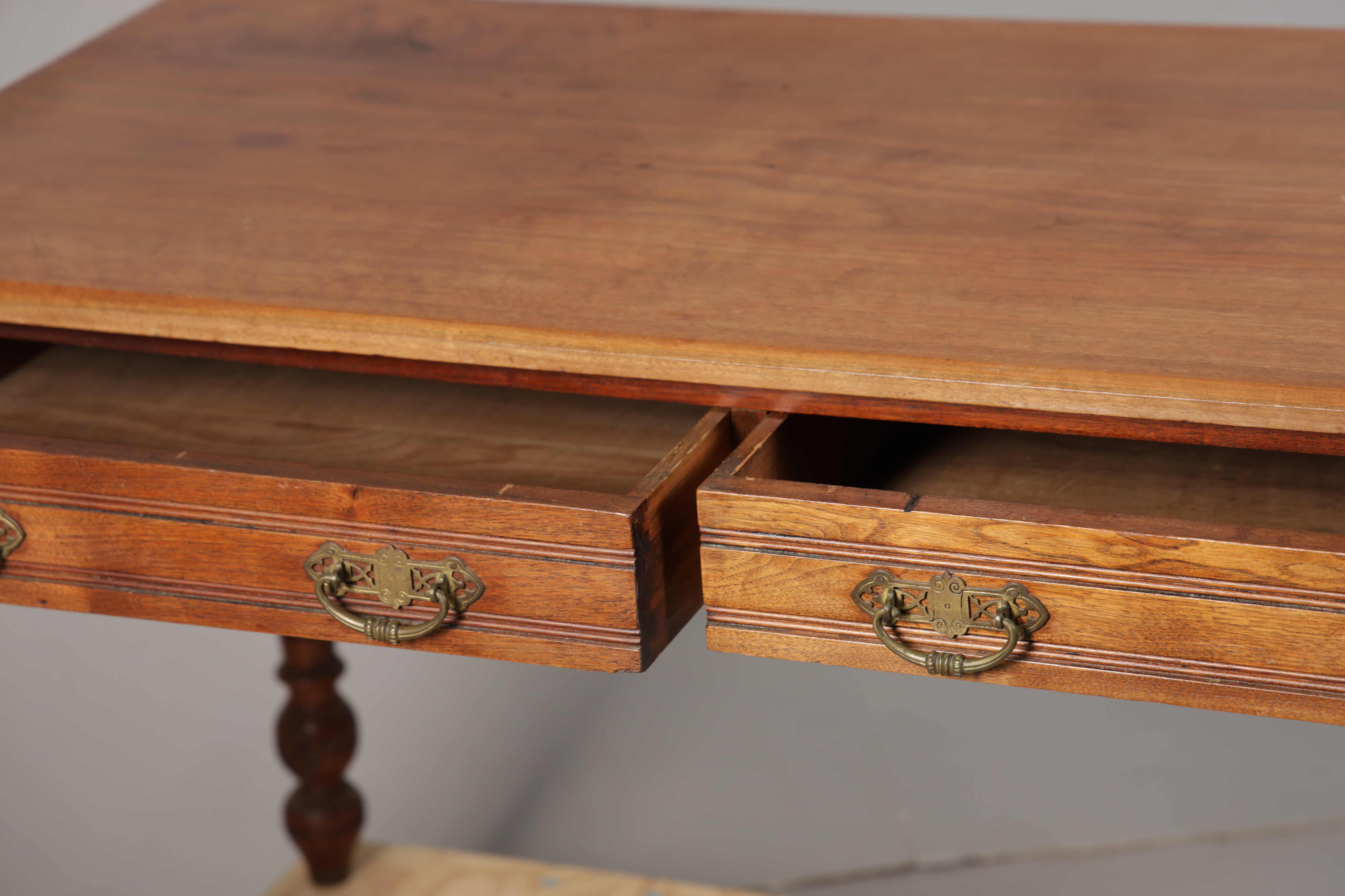5012745. A LATE VICTORIAN WALNUT TWO-DRAWER SIDE TABLE.