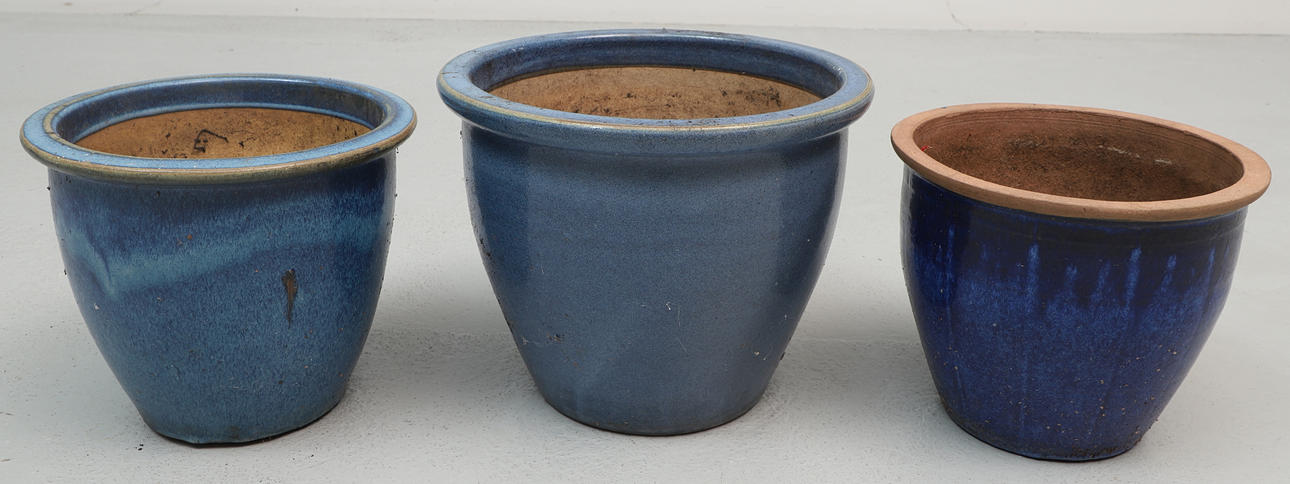 GARDEN POTS, 3 pcs, glazed earthenware.