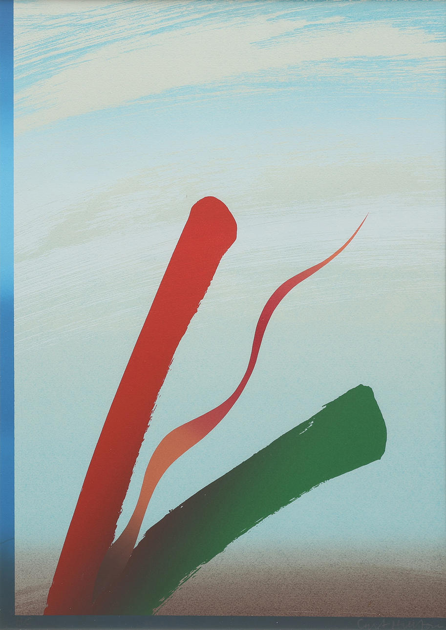 Colour lithographs, two signed and marked HC, and one monogrammed and numbered 95/99. Frame dimensions approx. 30x21.5, 55x41 and 51x42 cm.