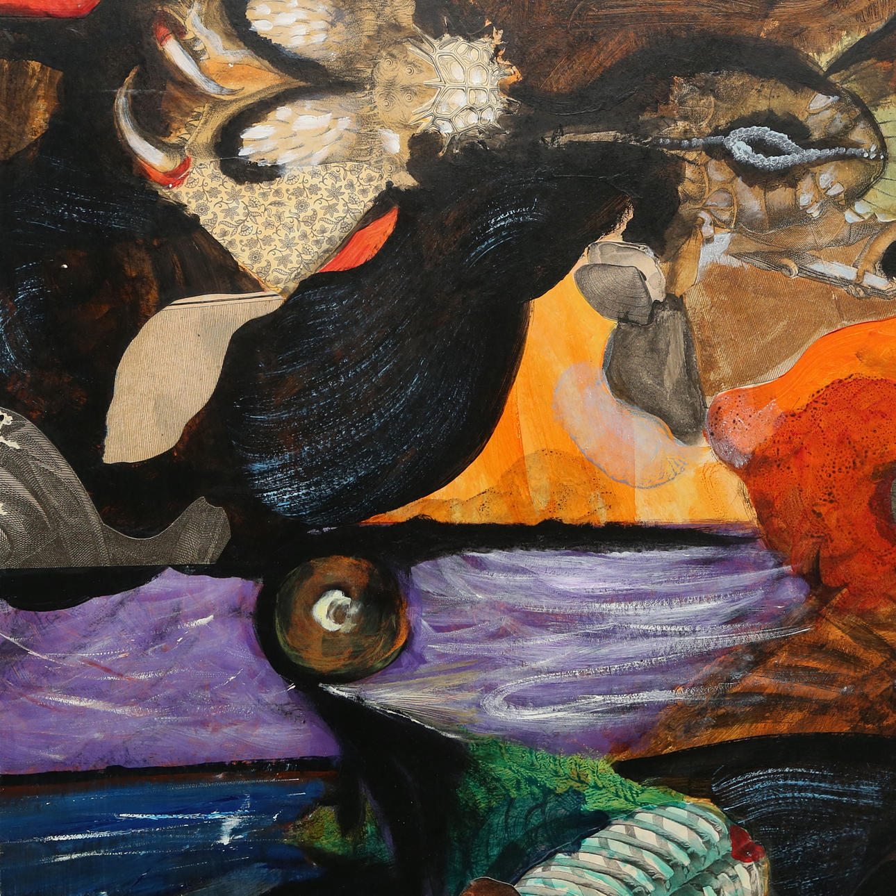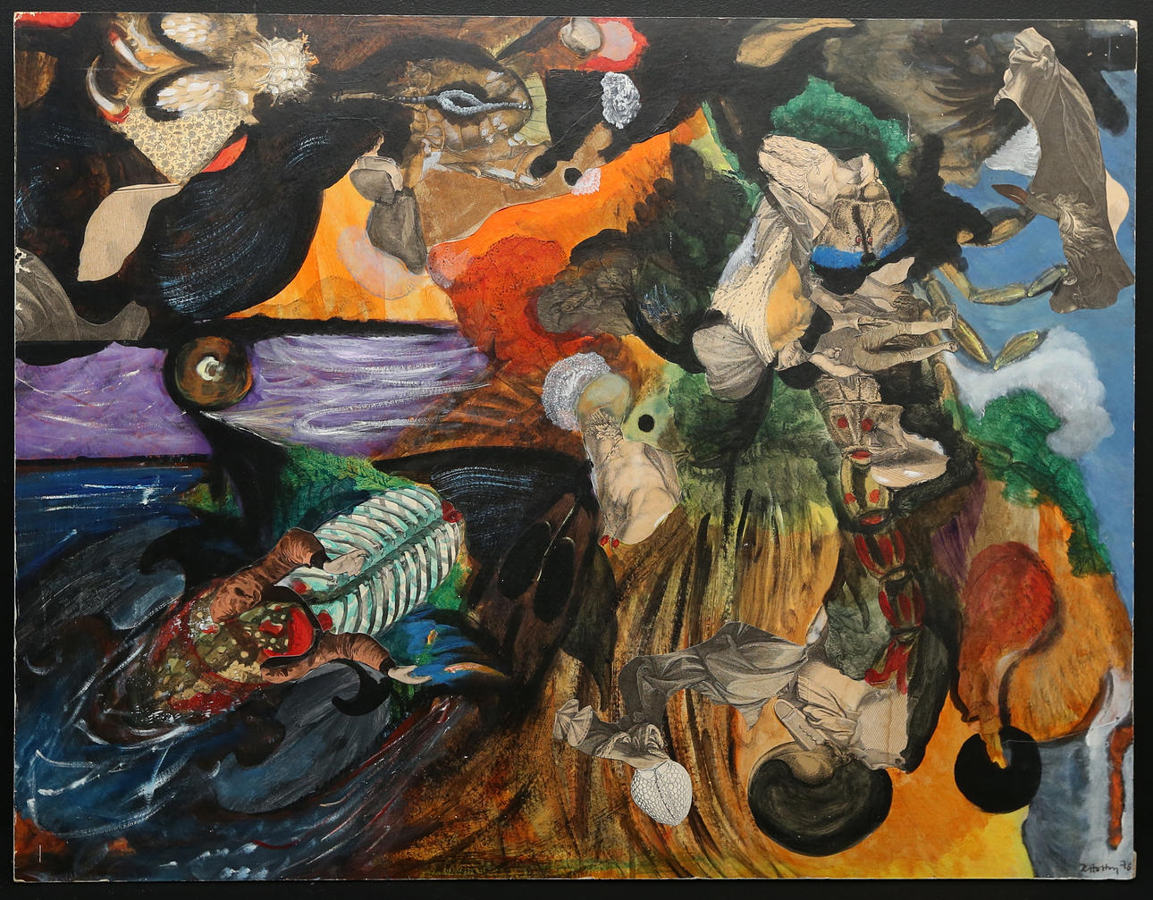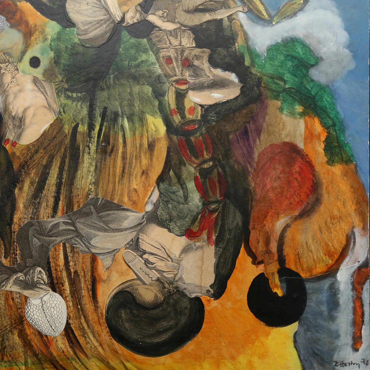 Mixed media on paper with collage mounted on panel, 71 x 92.5 cm.