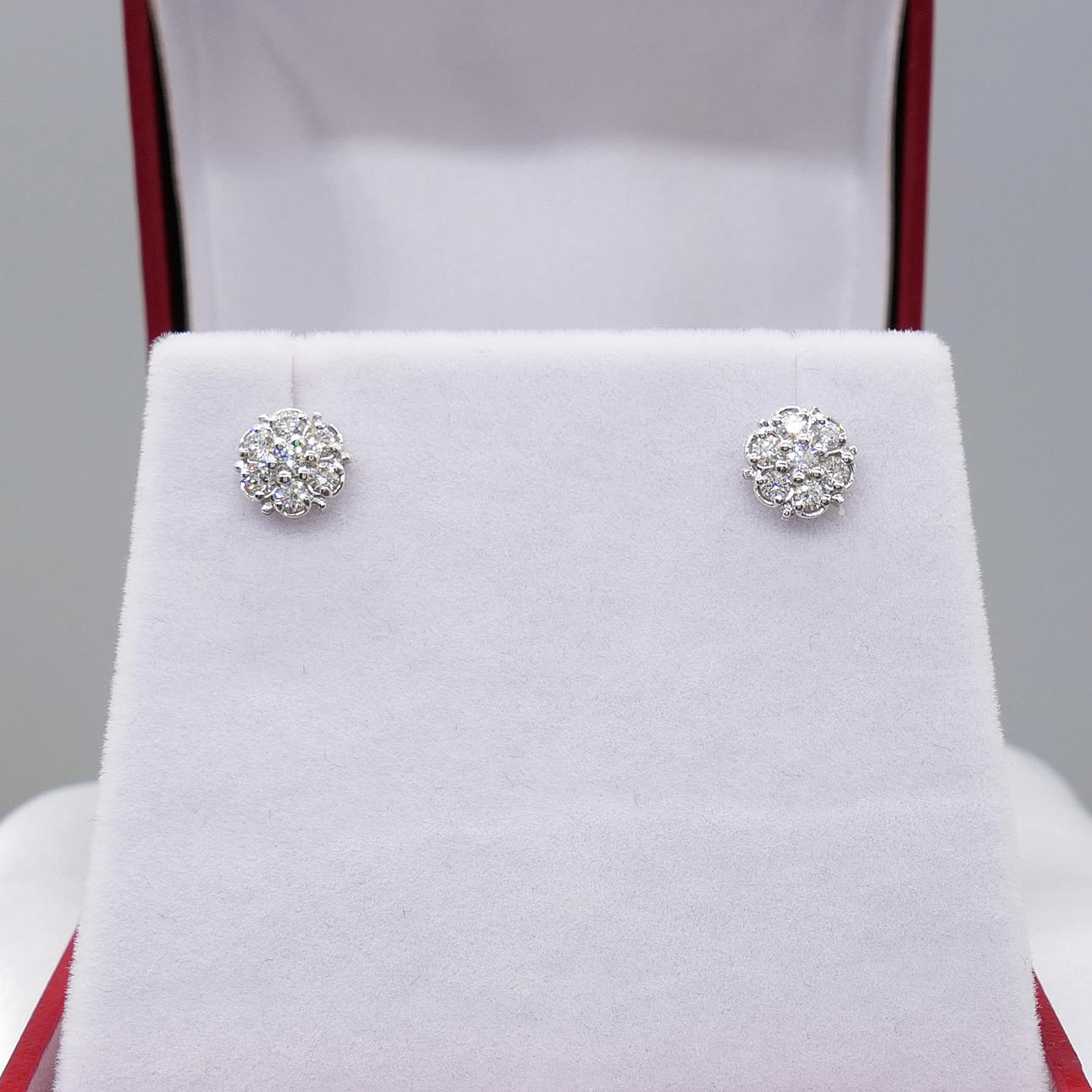 Design: drop length 21mm; bales may be detached to be worn as diamond daisy cluster studs (see photos)