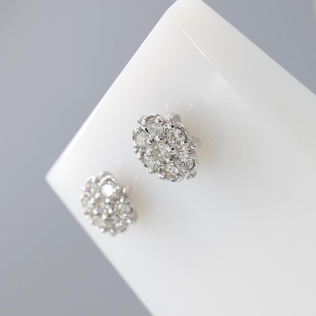 Earrings: 18k white gold as hallmarked; weight 6.4 grams