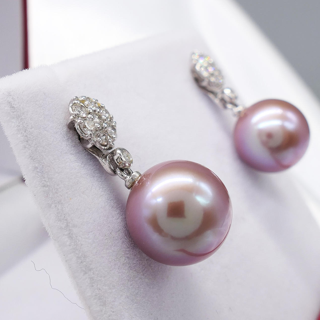 Pearls: cultured, Tahitian; 11mm diameter; round; pinkish grey; suspended setting