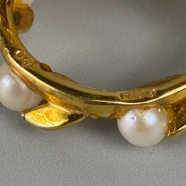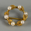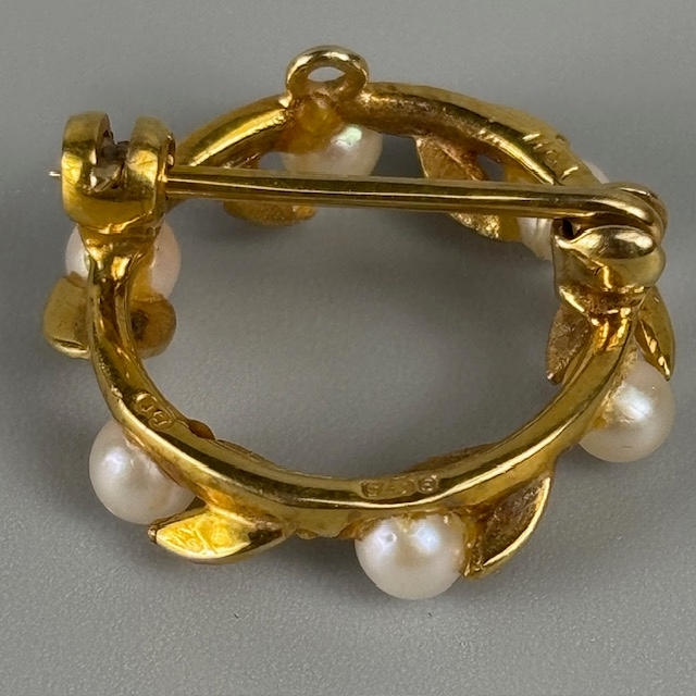 9ct gold wreath brooch set with seed pearls, approximately 15mm diameter, 2.2g.