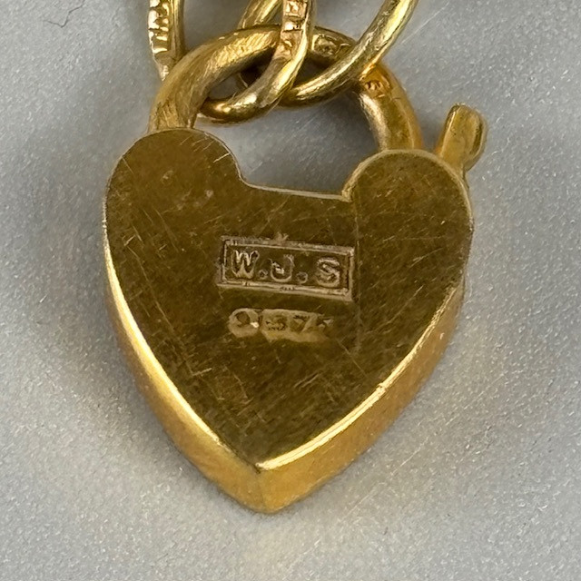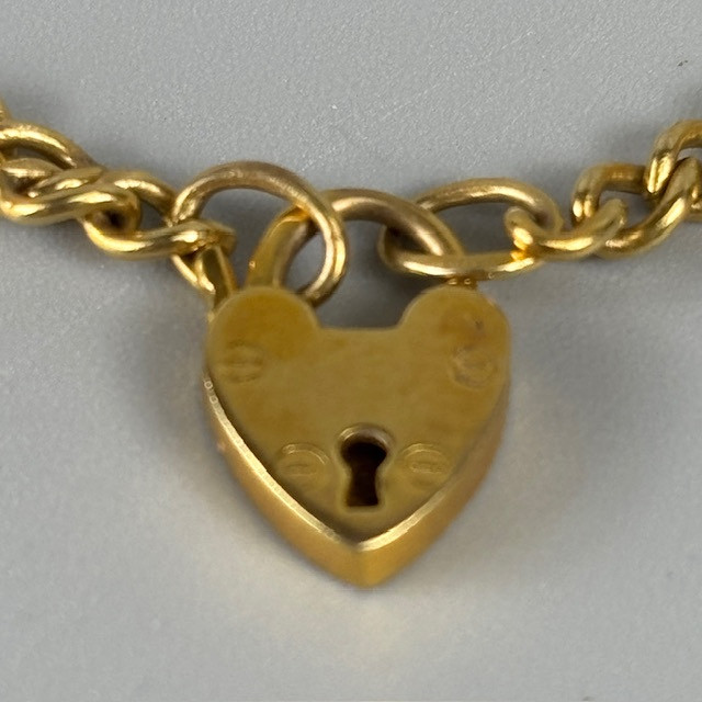 5013225. 9CT GOLD CURB CHARM BRACELET.