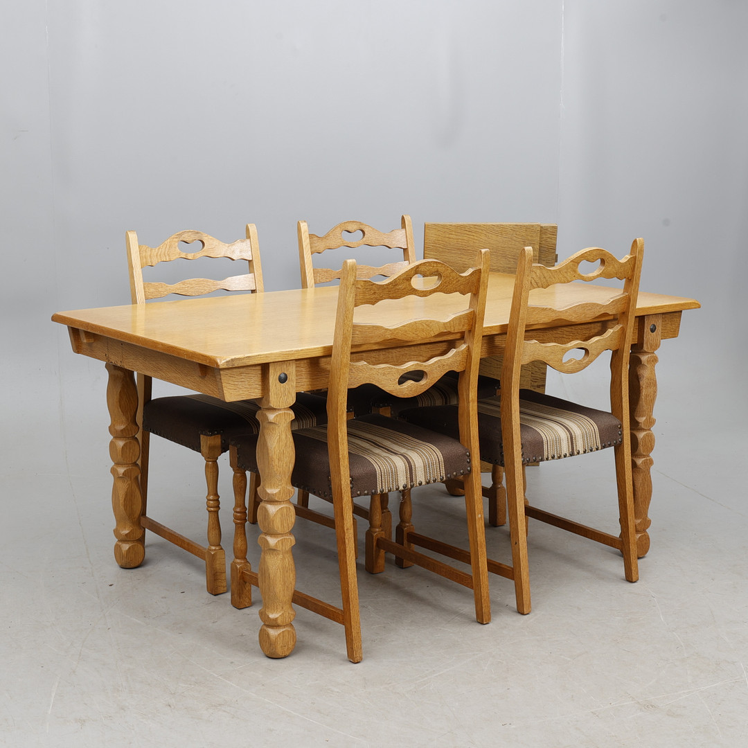 5013277. A 7-piece dining group, oak, Denmark.