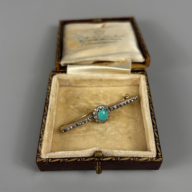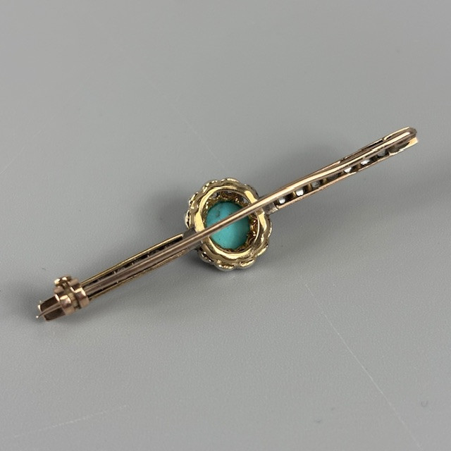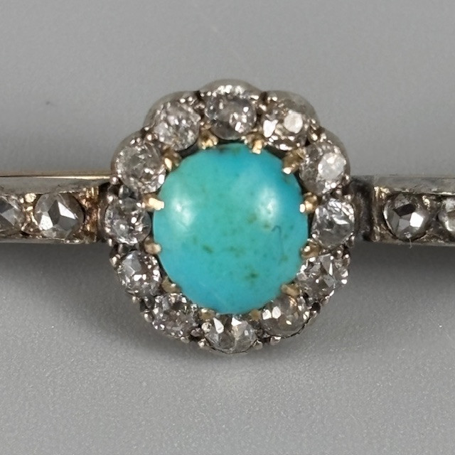 5013282. DIAMOND AND TURQUOISE BAR BROOCH.