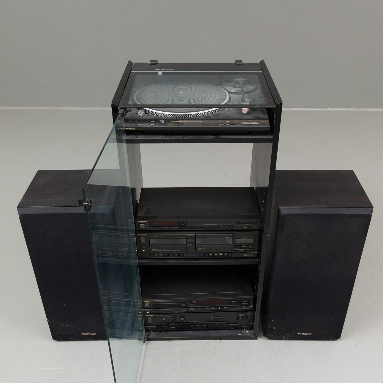 Stereo rack with vinyl player, cassette player and amplifier, 47x43x97 cm