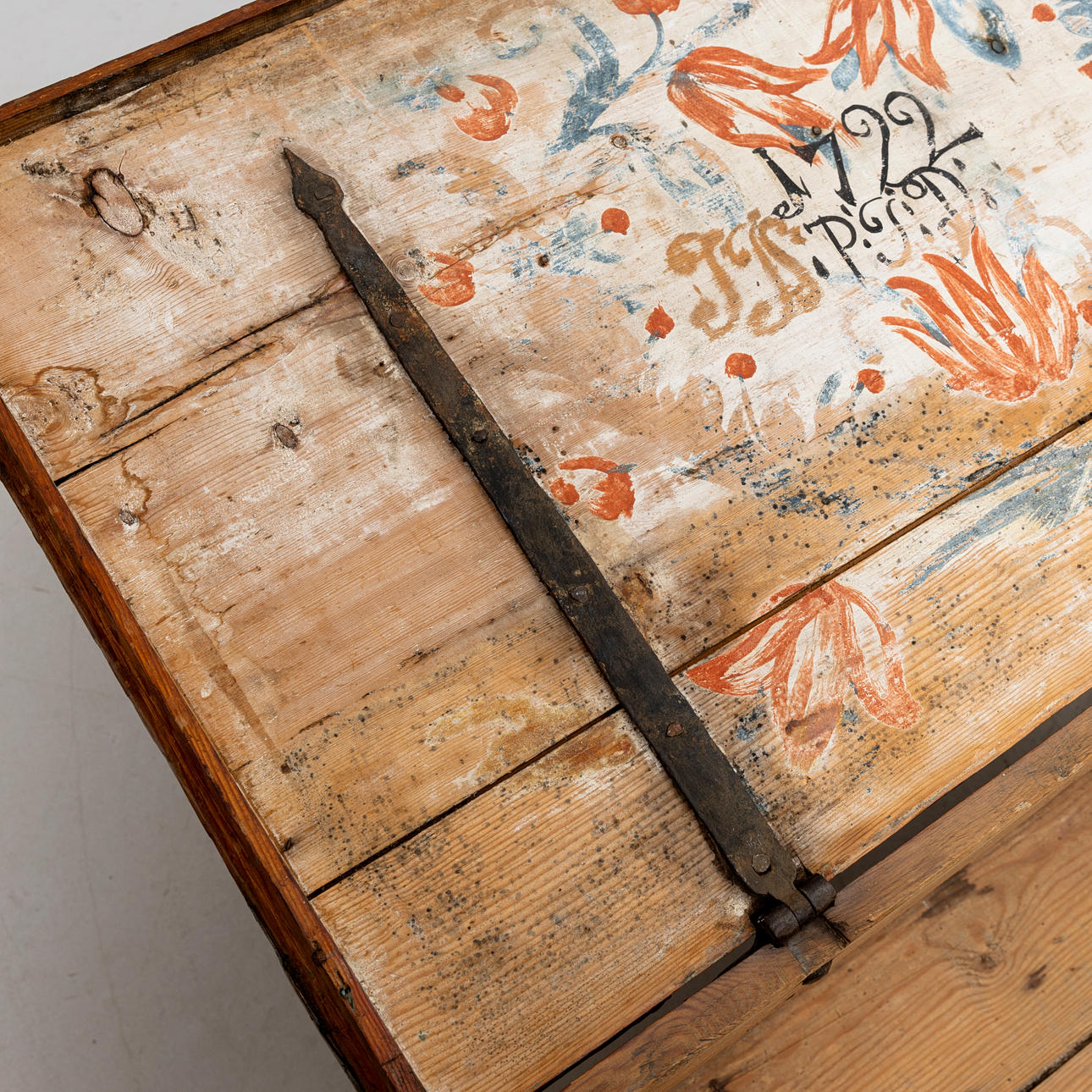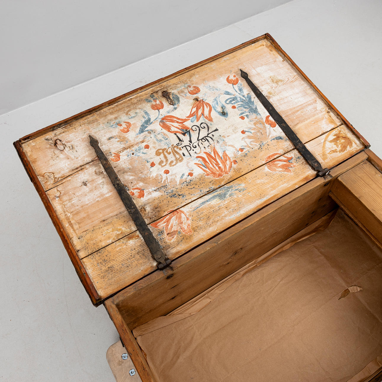 A chest, interior dated 1722, allmoge.