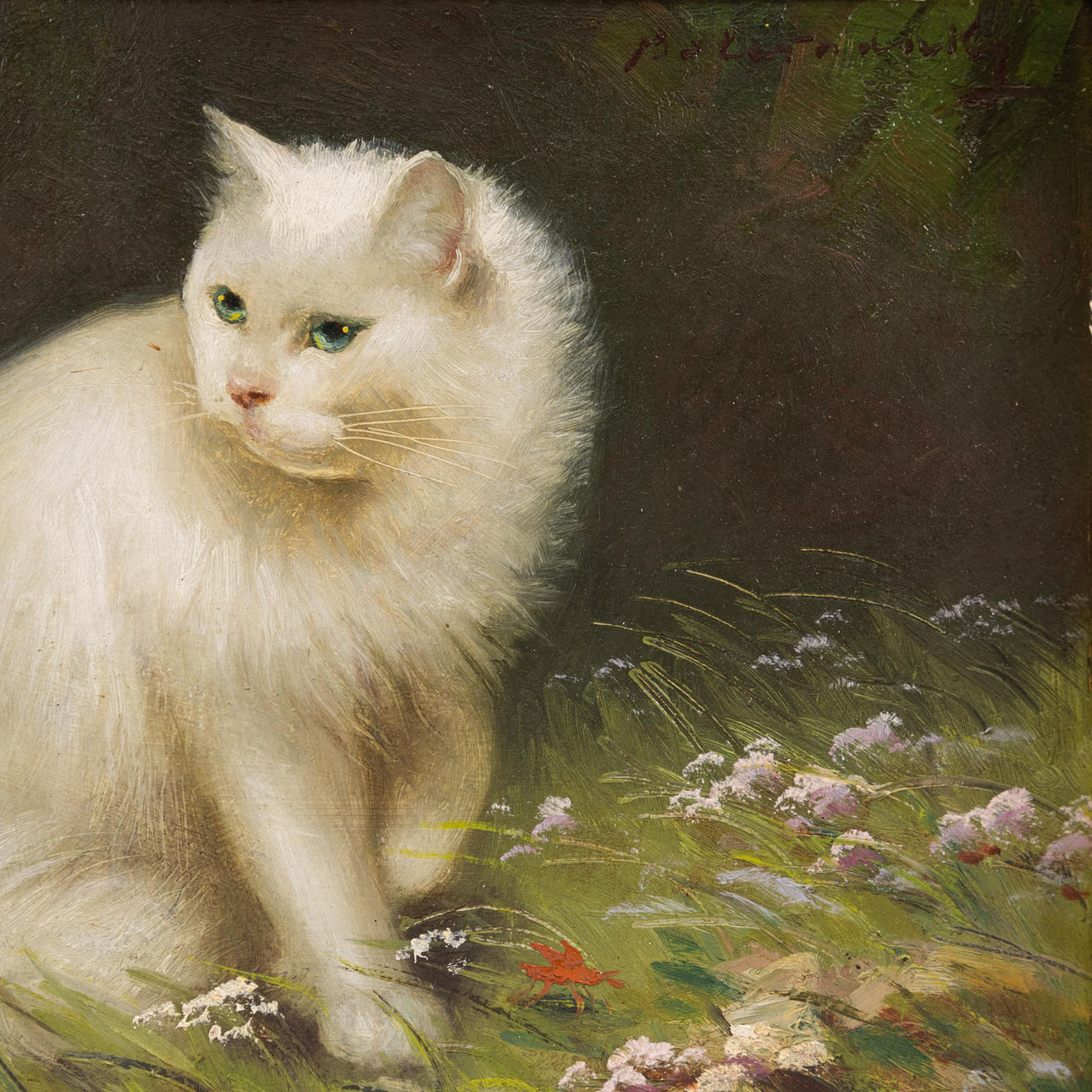 ANTON BOLERANSKY. oil on panel, motif with cat, signed.