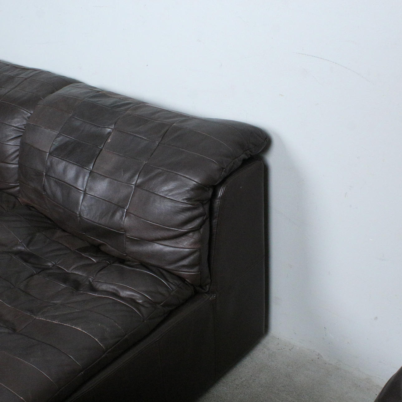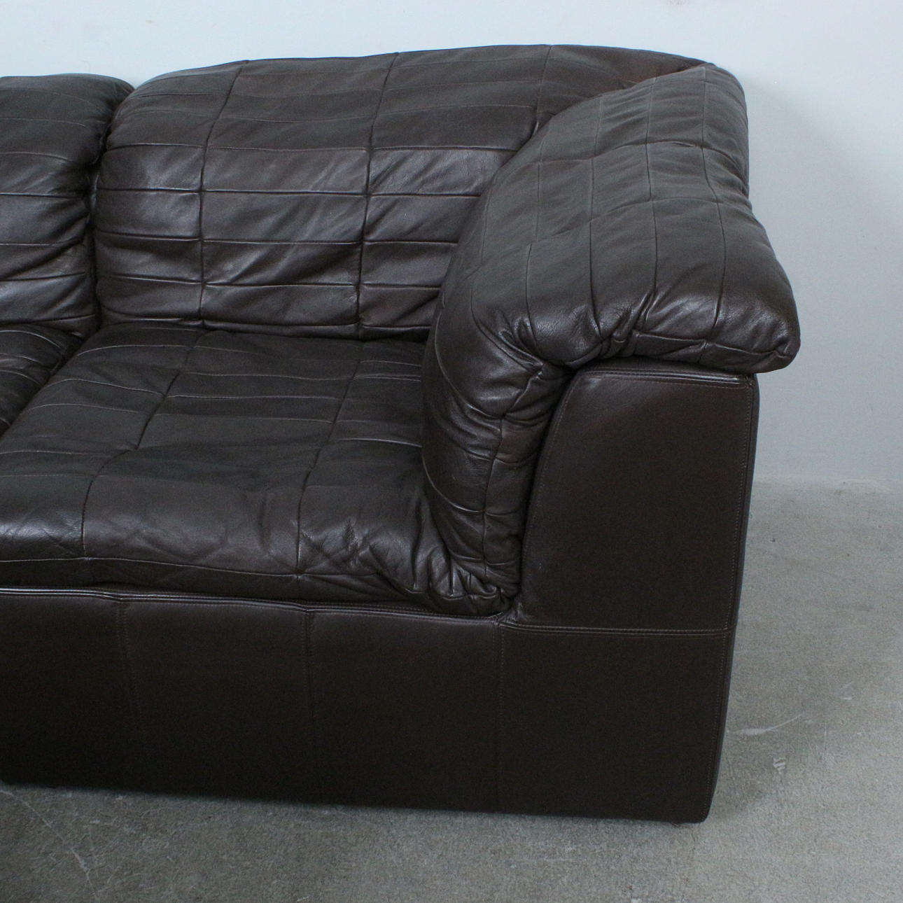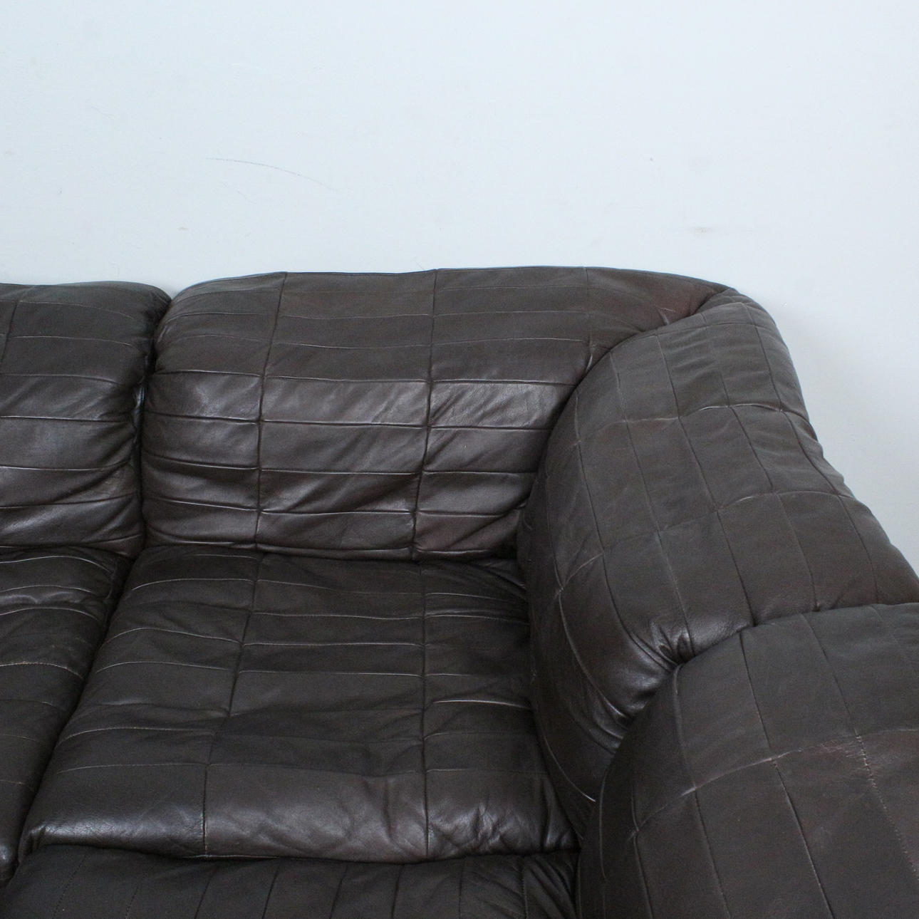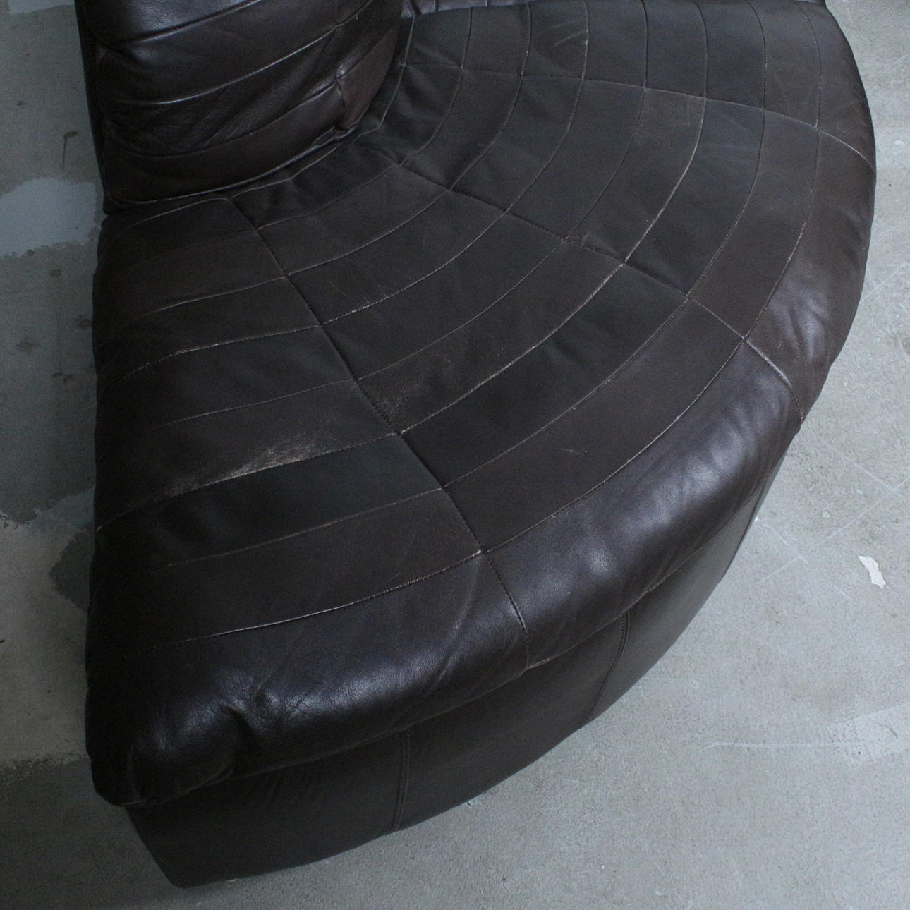 OLE CLEMMENSEN, Laauser International, six-piece modular sofa/ seating area, patchwork leather, wood, 1970s, Germany (6). Each with an upholstered wooden construction with a brown leather cover.