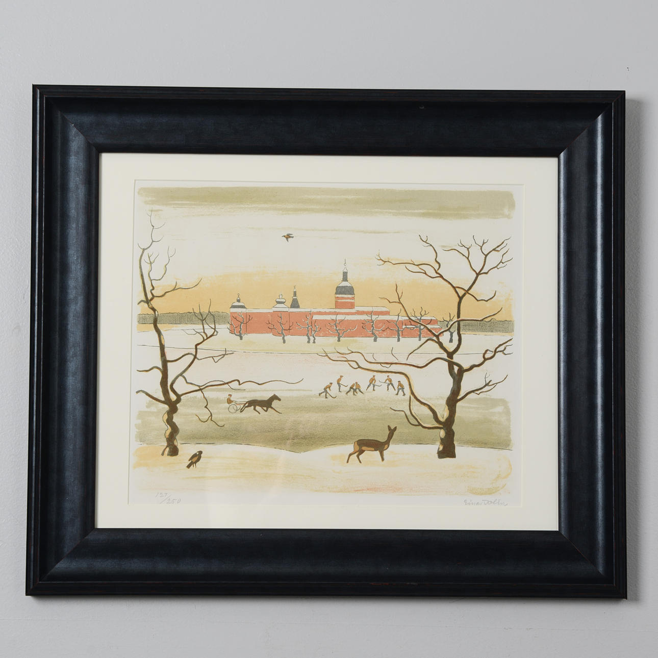 EINAR JOLIN. Gripsholm Slott in winter setting, colour lithograph, signed and numbered.