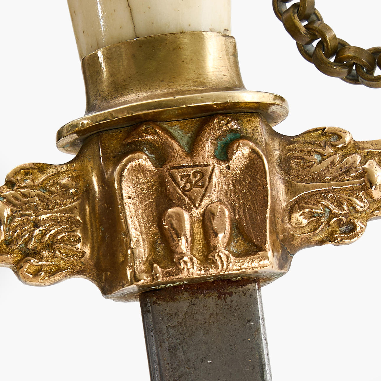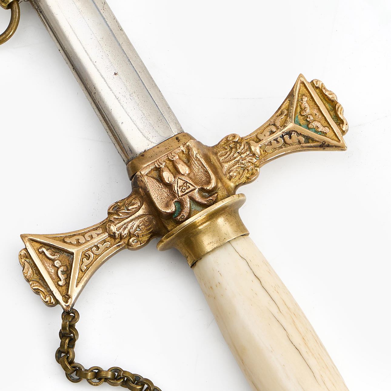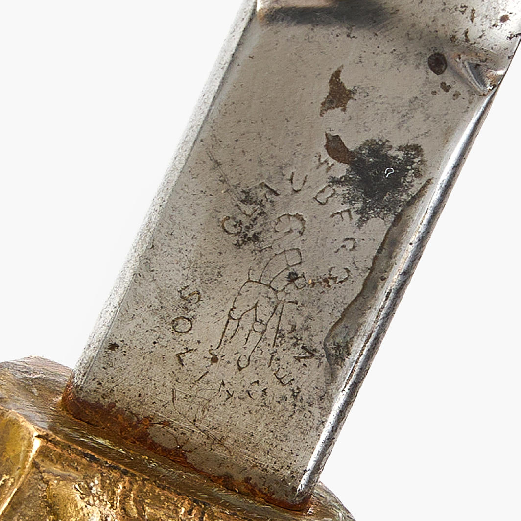 Hanger in bone, brass bracket Blade length 71cm Total length 86cm.