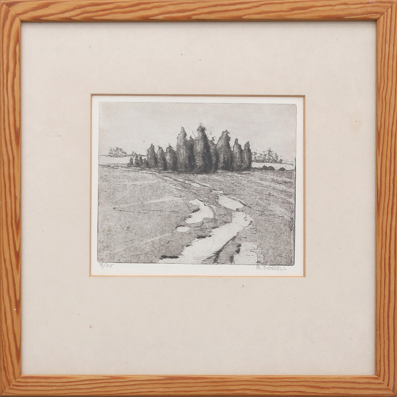 5013851. SUNE FONDELL. Landscape with junipers. Etching, signed and numbered 3/25.