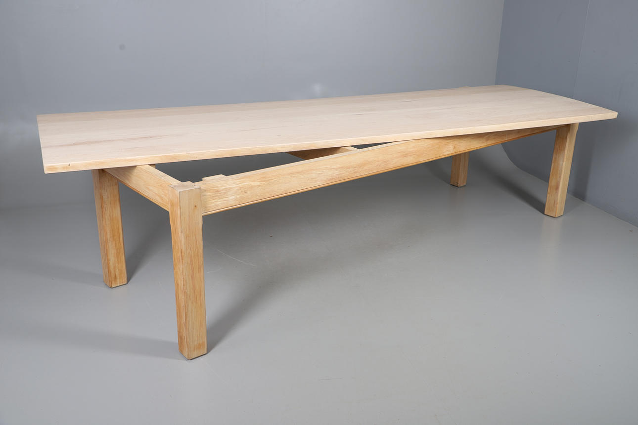 5013894. A MODERN MAPLE TOP REFECTORY TABLE.