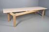 A large modern maple top refectory table, with a curved top and raised on tapered square supports. 80.5cm (height) x 305cm (length) x 100.5cm (width).