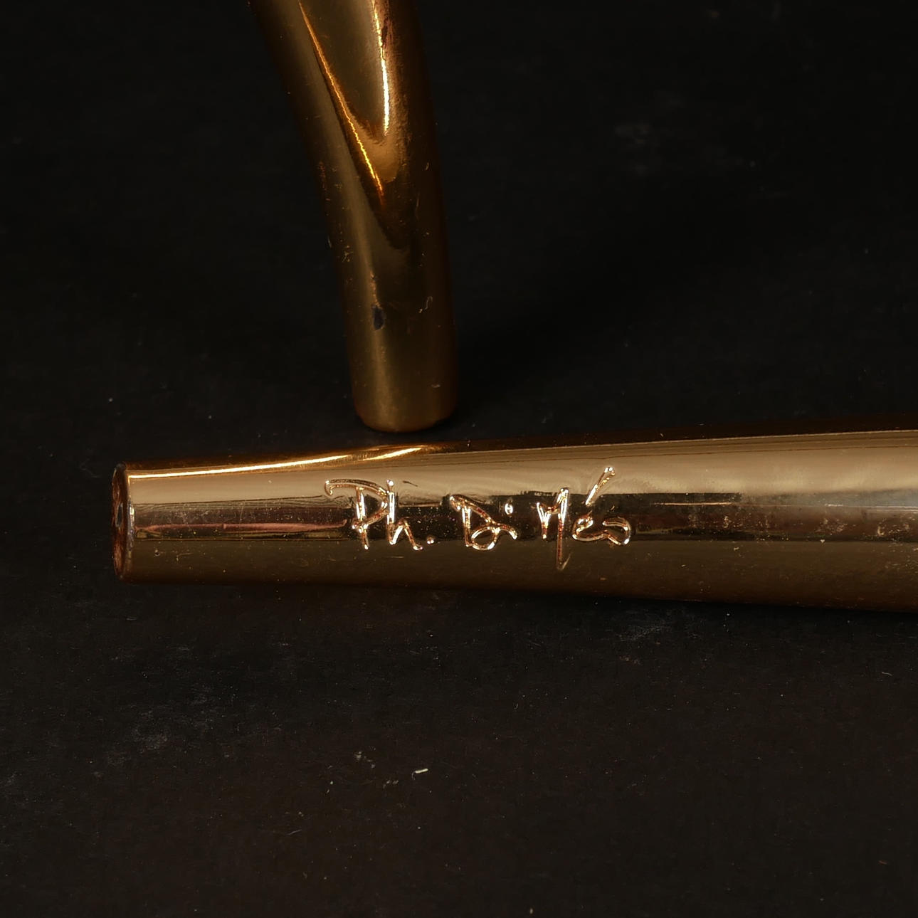 Three-piece foot in gold-plated metal. Height 25 cm, width 16 cm.