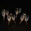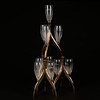 Champagne glasses in racks that can be built at height.