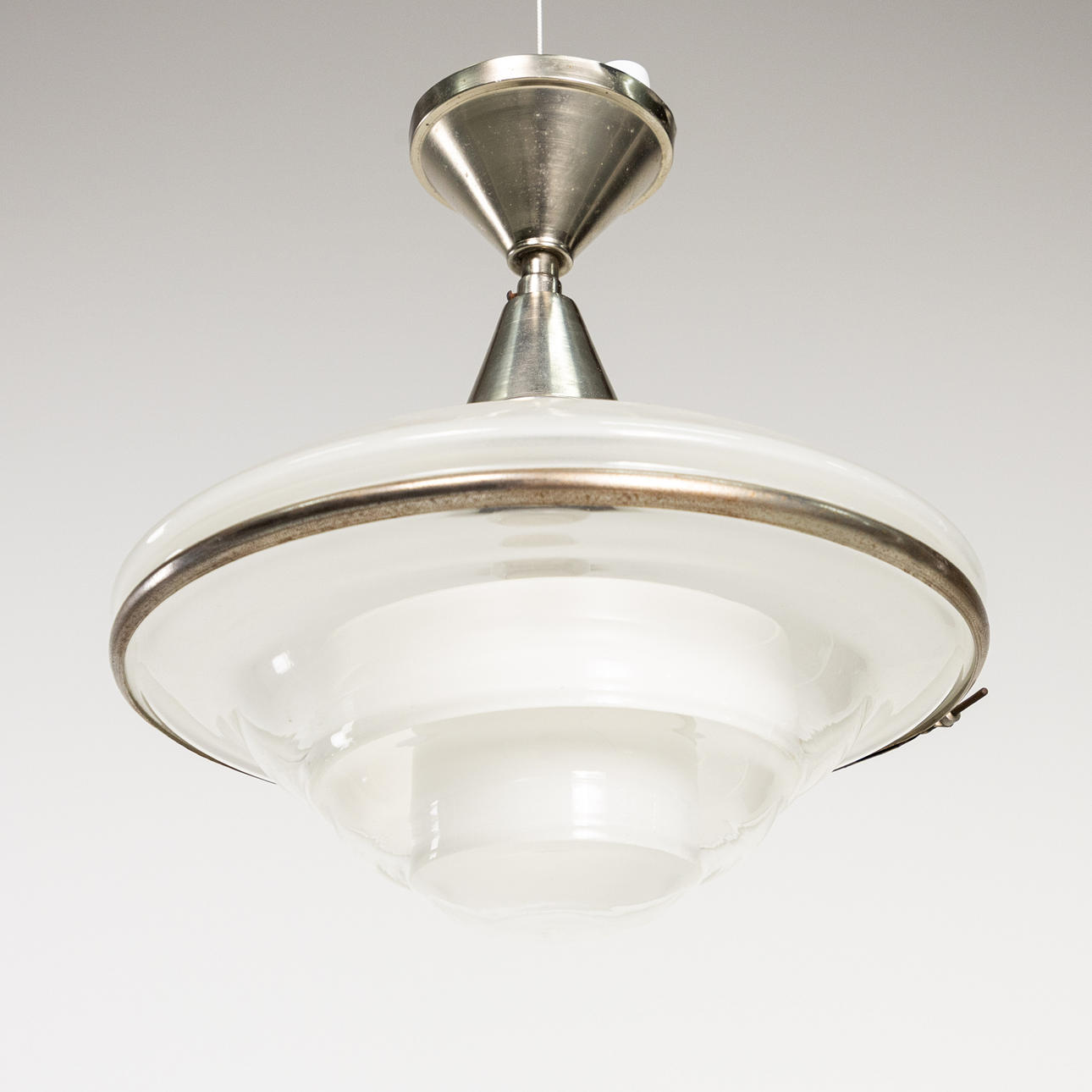 CEILING LAMP, functional, glass/metal, 40s, Ø 35 cm.