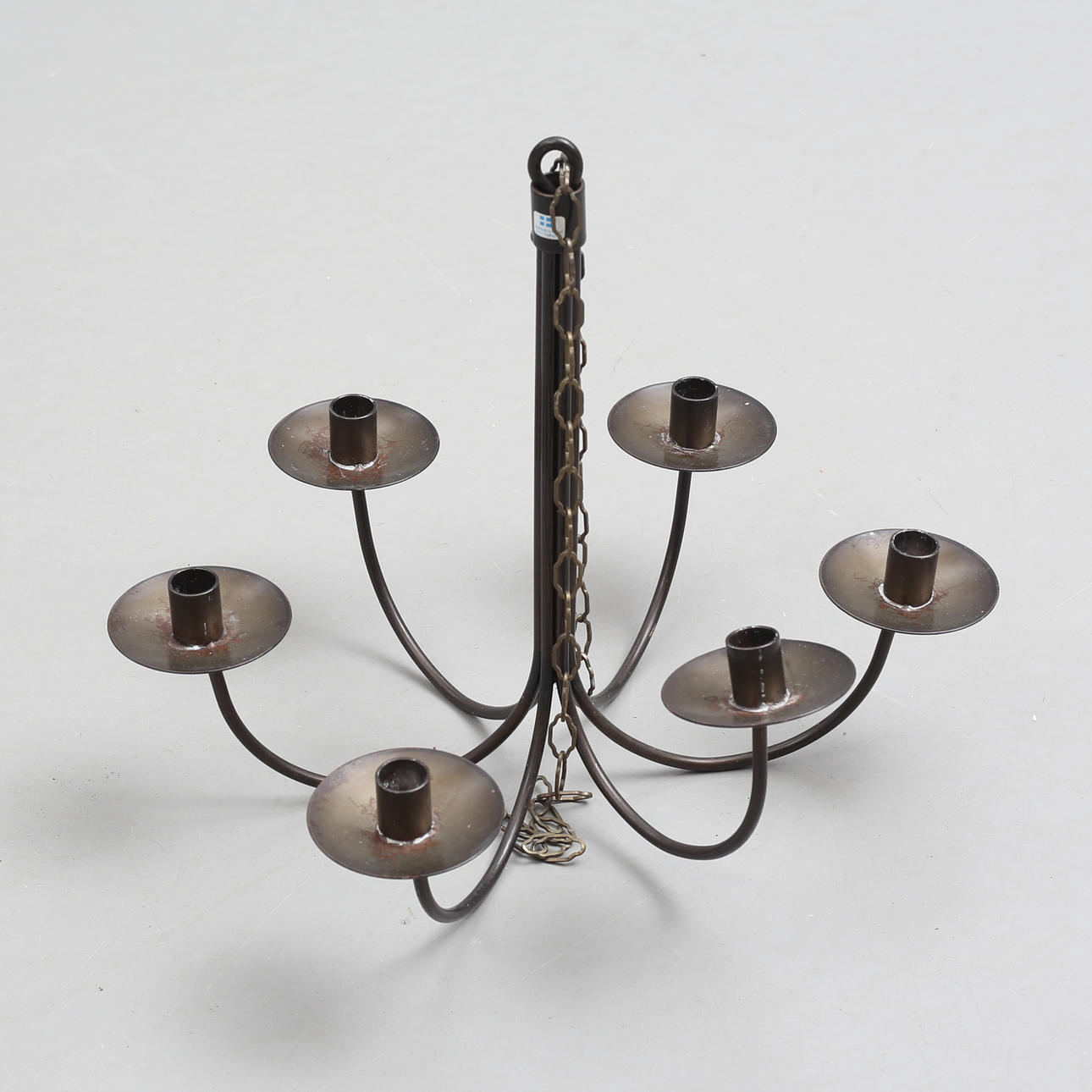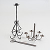 Fire fork, length approx. 55 cm Floor candlestick, height approx. 75 cm Chandelier, height approx. 38 cm, diameter approx. 42 cm.