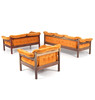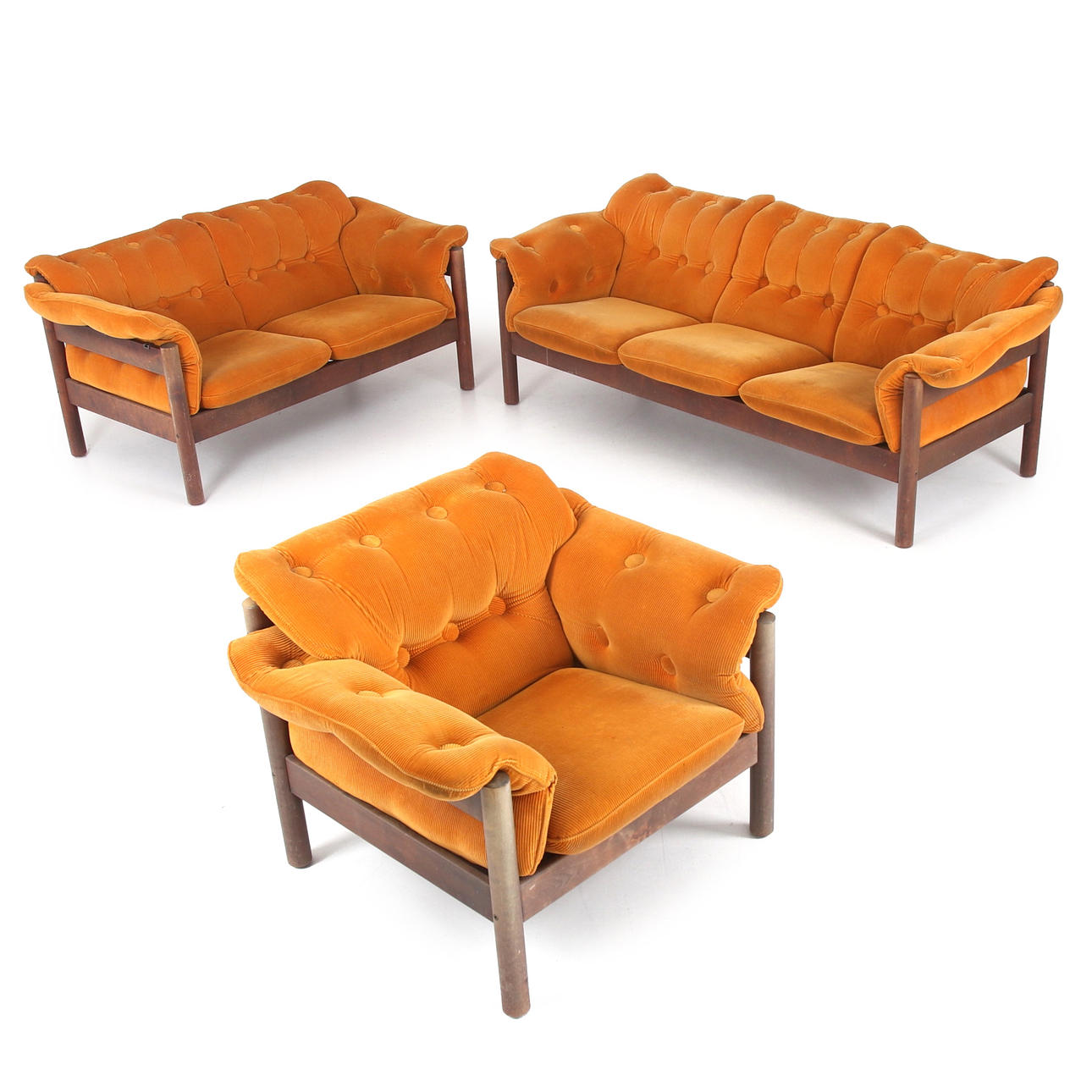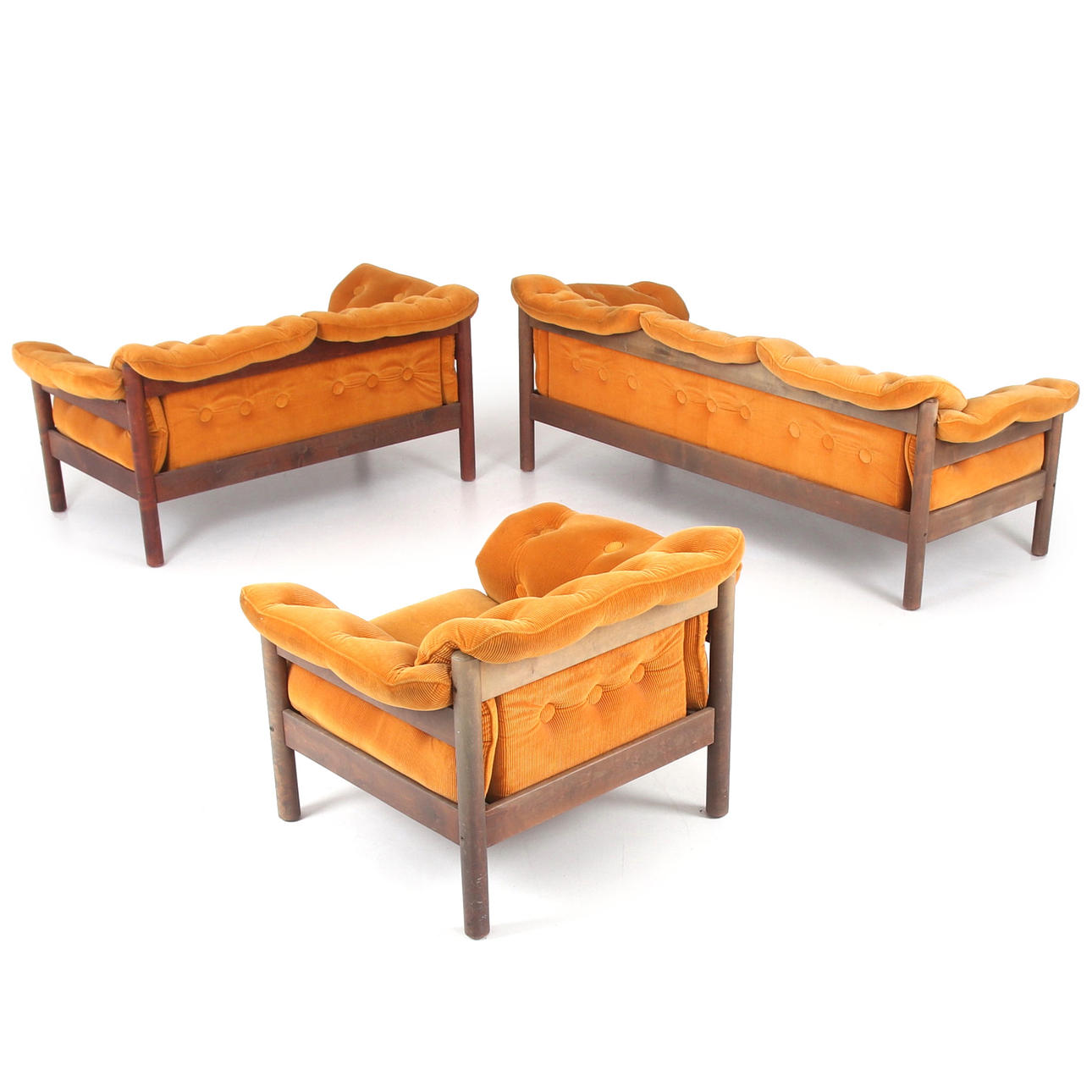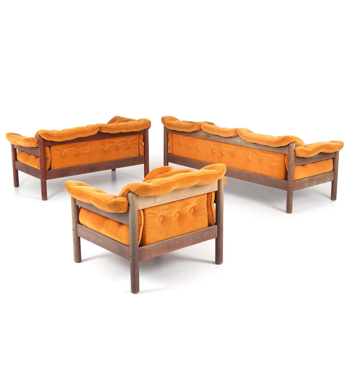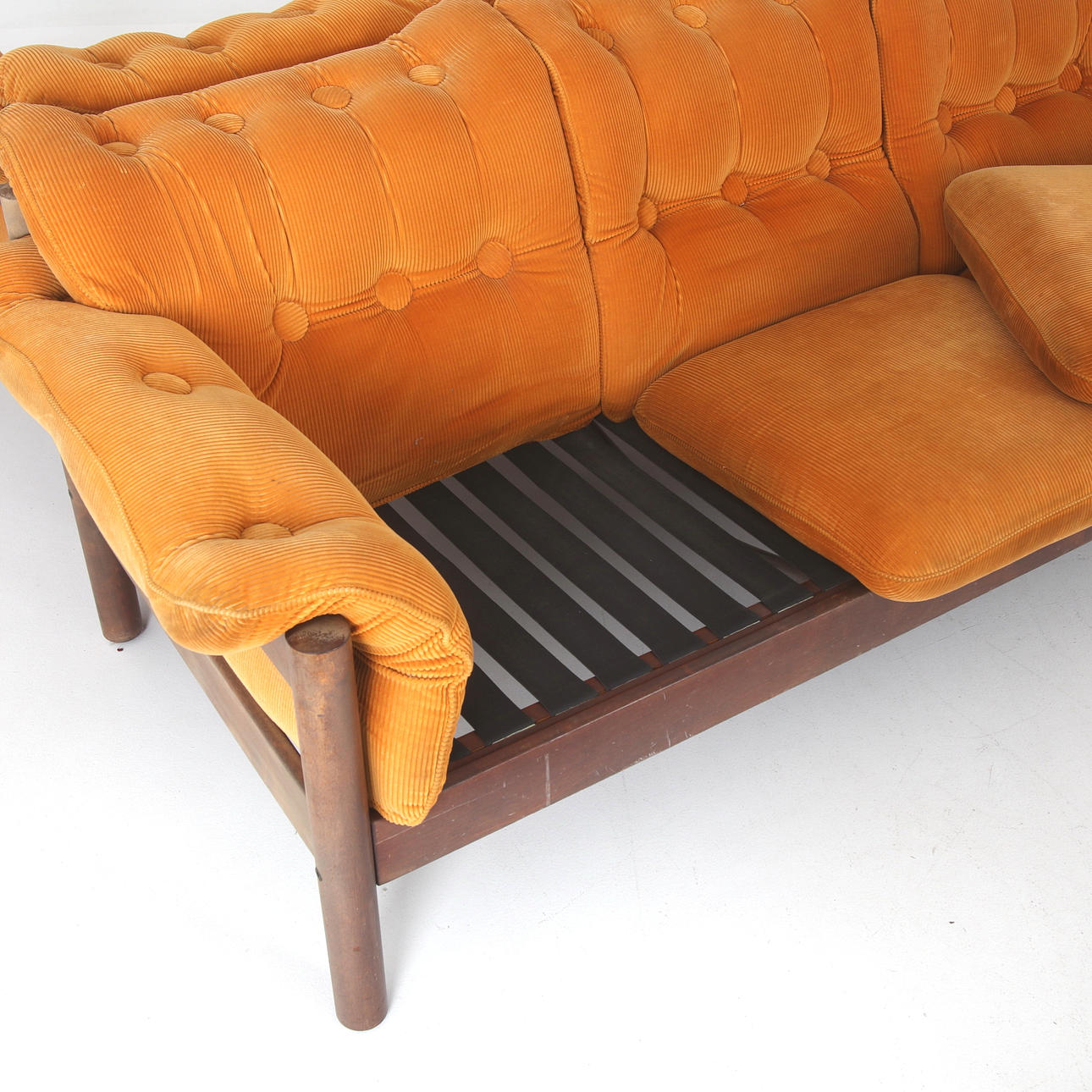 Cushions dressed in orange corduroy textile