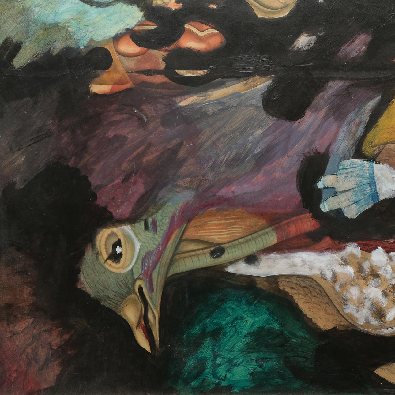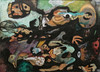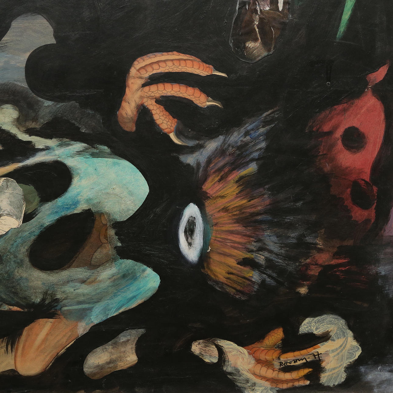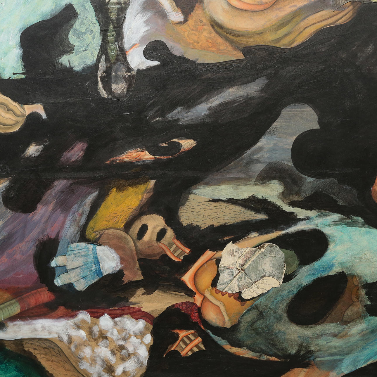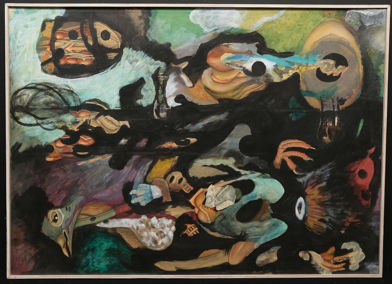 Mixed media on paper with collage mounted on panel. Frame approx. 99x71 cm.