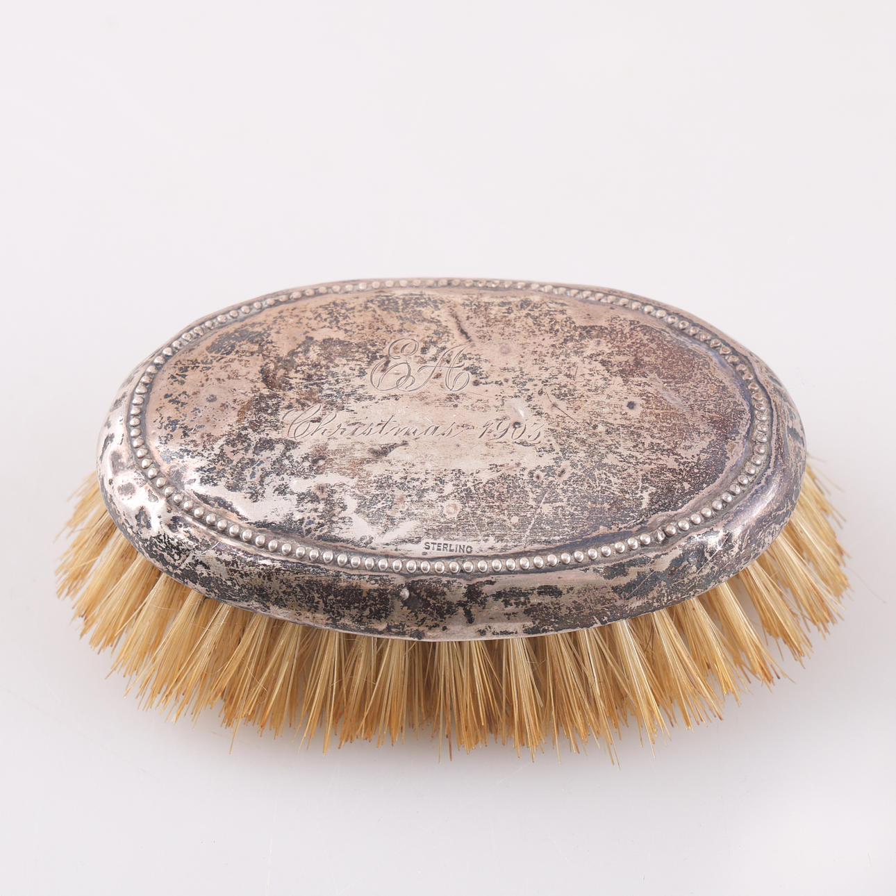 Total weight incl. filling/bristles 395 grams Candlestick sterling height 25 cm, has filling in feet Brushes 830, length 12-25 cm.