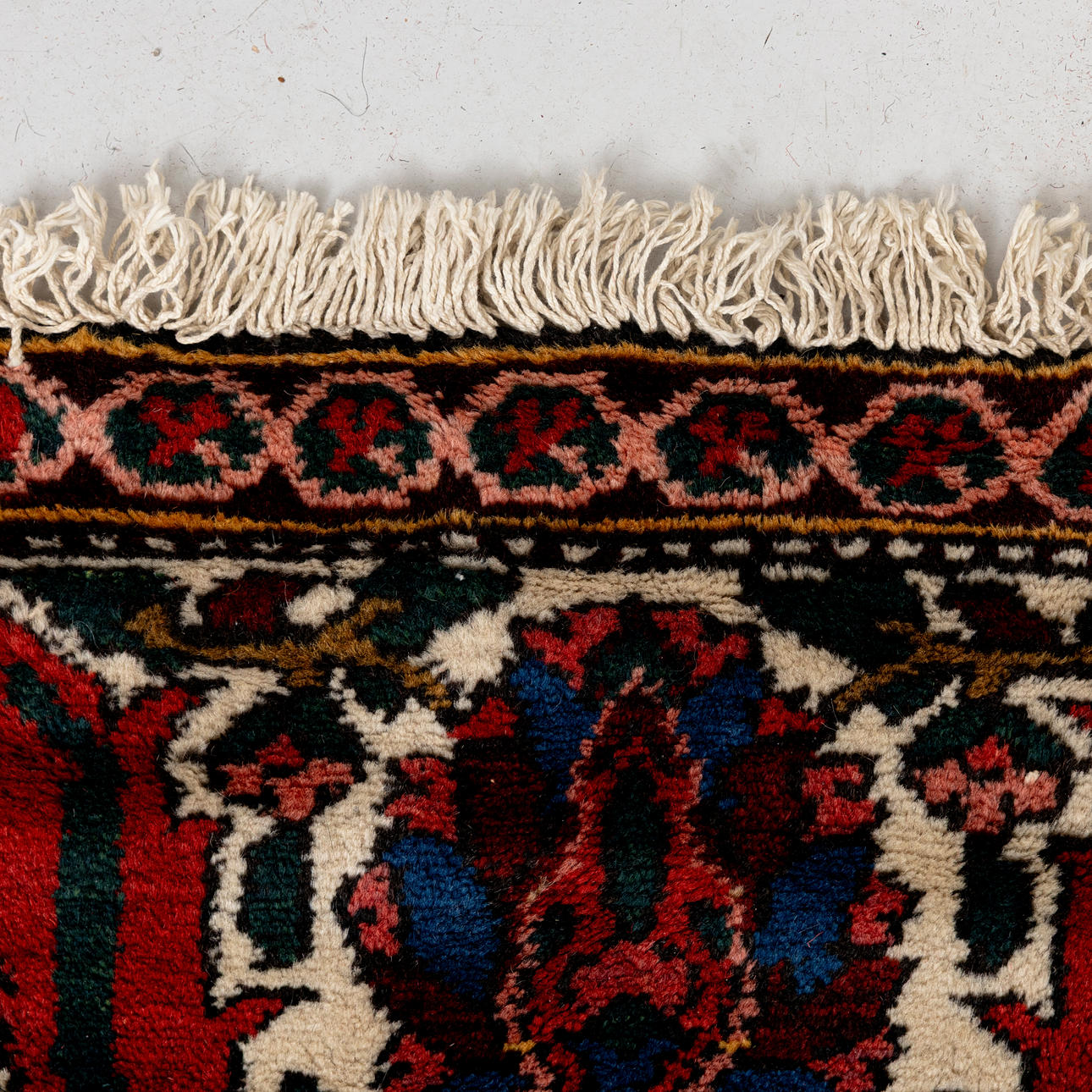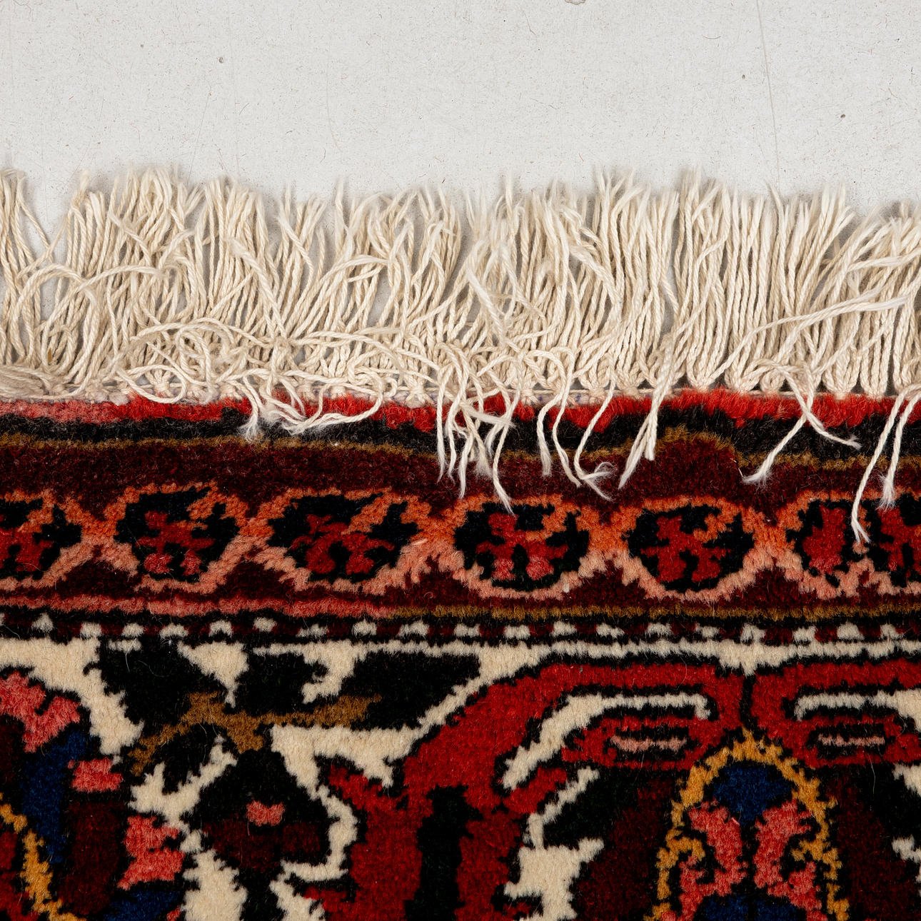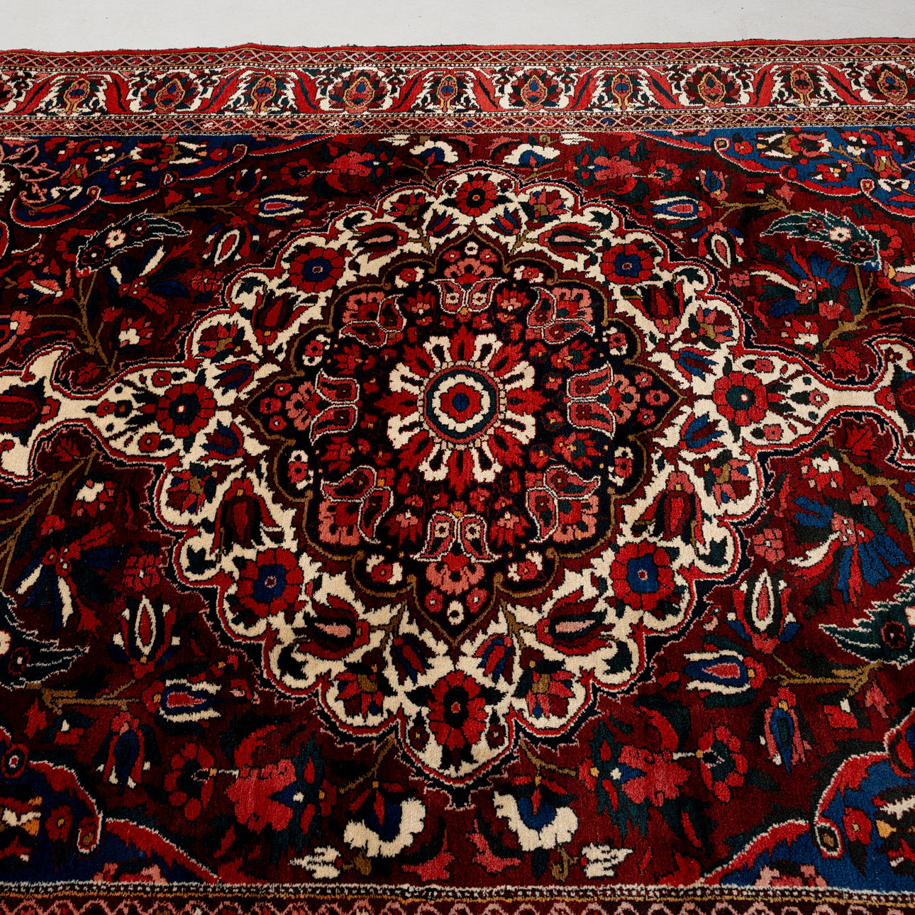 Brown-red base with polychrome floral pattern, large medallion and corner ornaments. The boat with plamettes, approx. 303x214 cm. -.