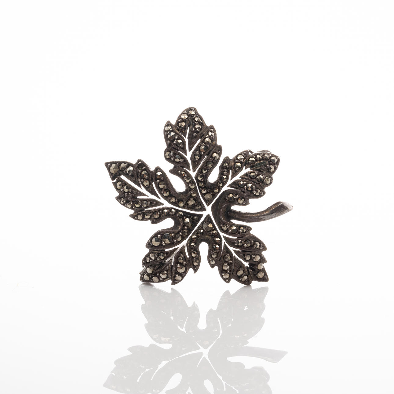 5014436. BROOCHES, 2 pcs, Silver, Marcasites, Onyx.