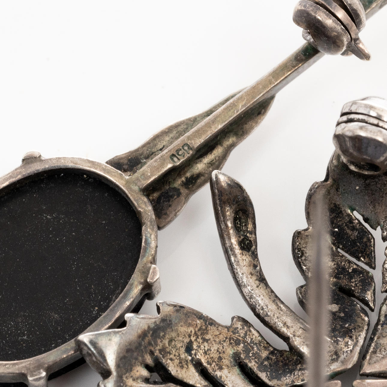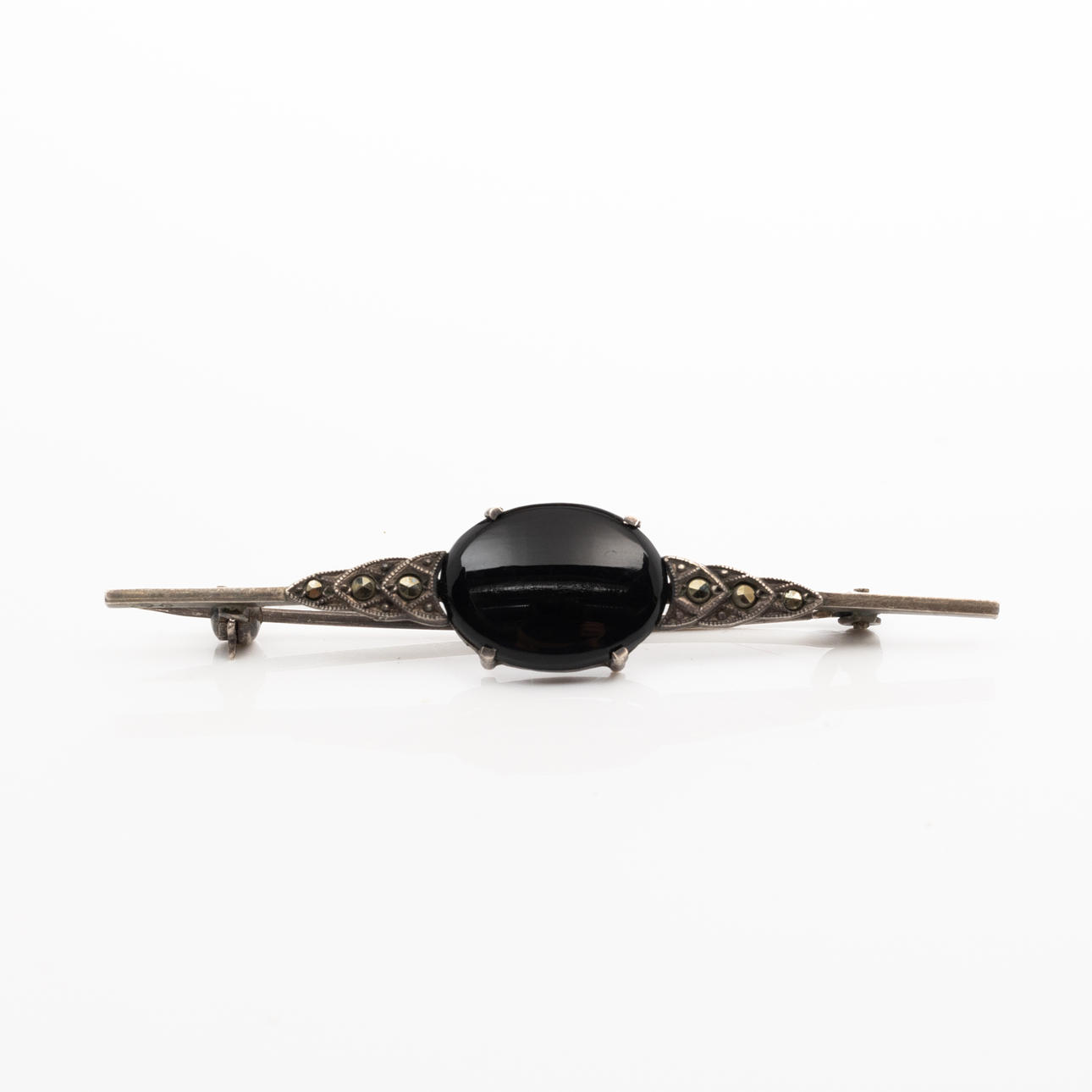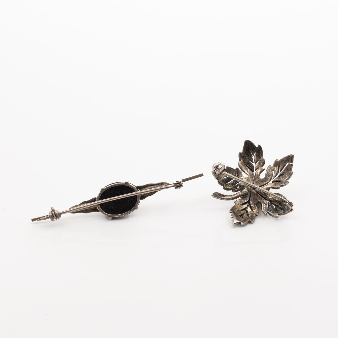 BROOCHES, 2 pcs, Silver, Marcasites, Onyx.