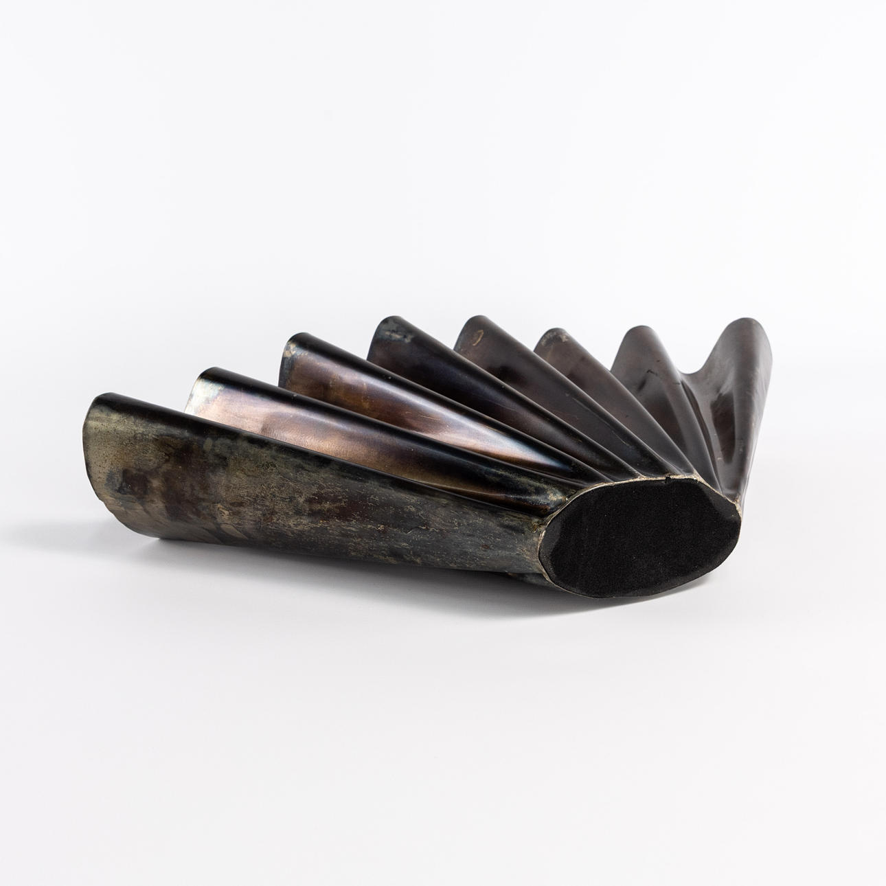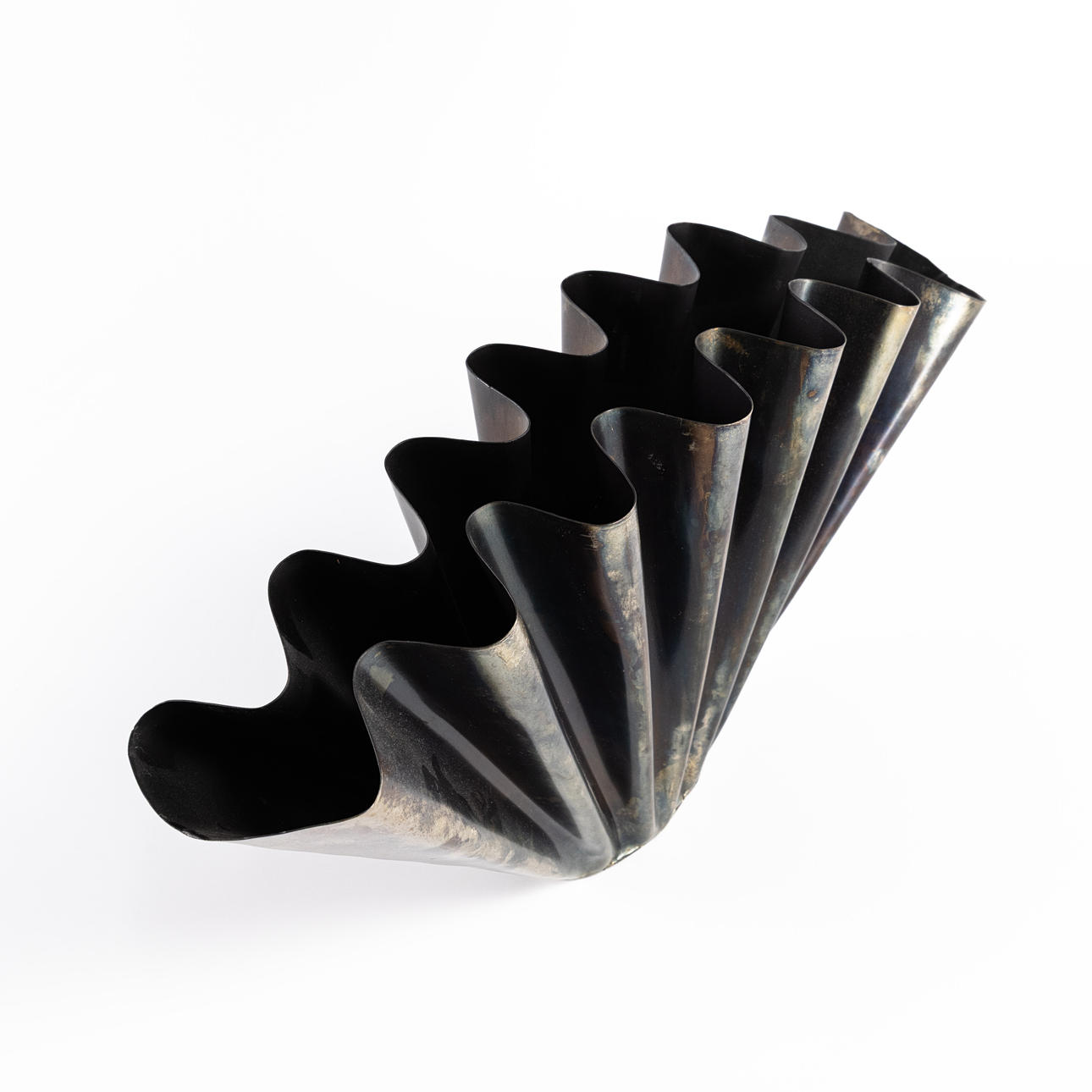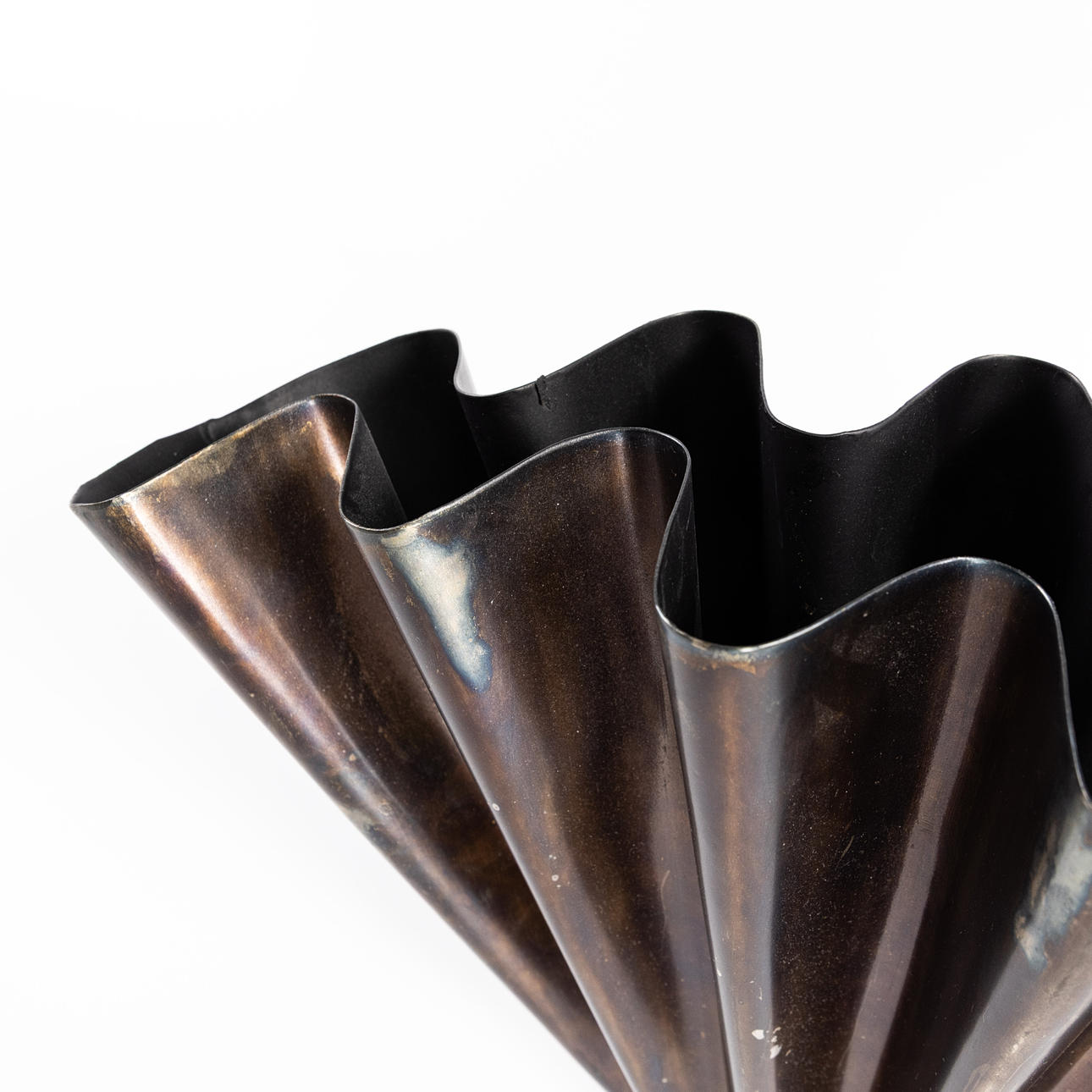 Vase in sheet metal, height 30 cm, width 56 cm.