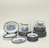 12 plates, diameter 24,5 cm, 11 plates, diameter 21 cm, 12 side dishes, diameter 18 cm, 11 deep plates, diameter 24 cm, grater, height 17 cm, sauce bowl, height 10 cm, 3 serving dishes, length 23 and 28 cm, 4 bowls, height 3,5 - 5,5 cm, length 20,5 - 26 cm.
