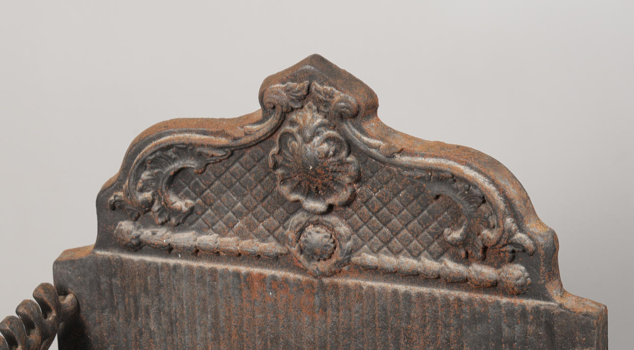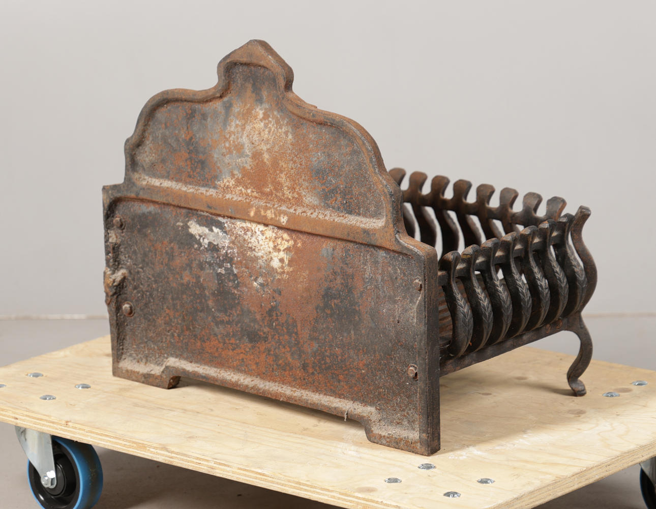 A WROUGHT-IRON FIRE BASKET.