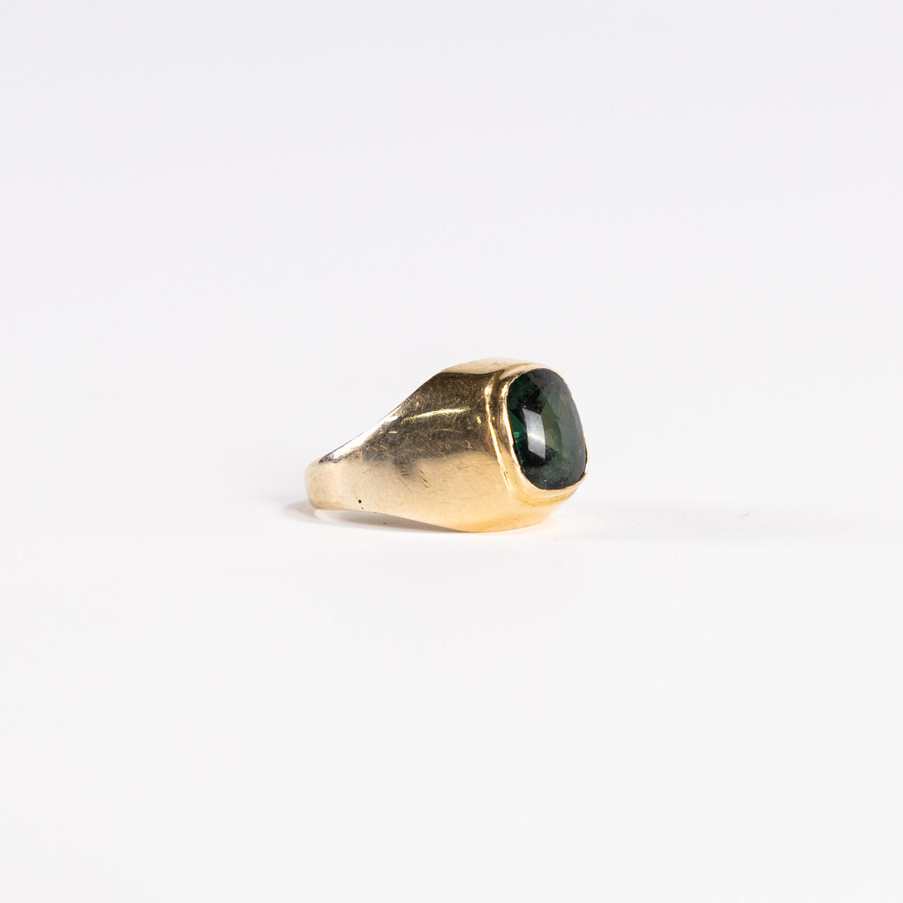 With green stone, size 14.75, gross weight 3.4 grams.
